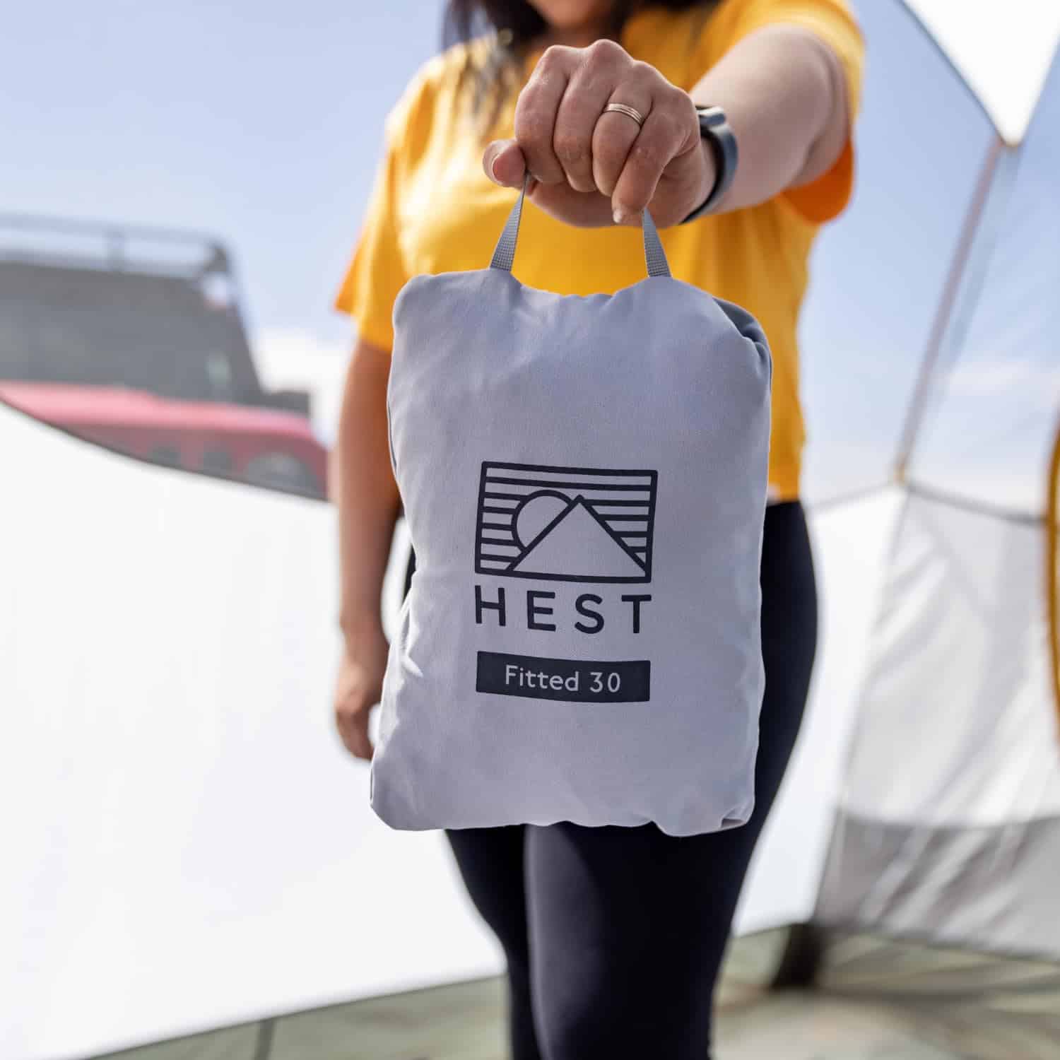 3. TRANSPORTABLE: ¡Agarra y ve! Un bolsillo integrado para guardar con lazo de viaje hace que almacenar, empacar y transportar sea muy sencillo. La Sábana Ajustable HEST está diseñada para guardarse en su bolsillo oculto para un almacenaje fácil.