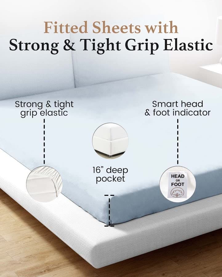 Sábana ajustable individual Good Sleep Bedding Twin XL – Sábana ajustable de cama tamaño twin XL, hecha de 100% algodón egipcio de alta calidad con una cuentas de 800 hilos para una sensación de lujo sin igual. Estas sábanas twin XL son suaves y transpirables, lo que las hace ideales para un descanso placentero. Nuestras sábanas ajustables extra largas twin XL están diseñadas para permanecer en su lugar gracias a la banda elástica resistente y bolsillo profundo que garantizan un ajuste perfecto en un colchón de hasta 16 pulgadas de grosor. Fabricadas con algodón egipcio de fibra larga con un tejido de satén, estas sábanas ajustables individuales son duraderas y resistentes a los lavados continuos, brindándote una experiencia de confort a lo largo del tiempo. Las sábanas Good Sleep Bedding Twin XL ofrecen facilidad al momento de hacer la cama gracias a las etiquetas indicadoras de cabeza y pie, lo que garantiza que la sábana permanezca en su lugar. Combina esta sábana ajustable twin XL con nuestras fundas de almohada a juego y una manta de waffle para darle un toque estético a tu habitación. Si buscas sábanas suaves y frescas para tu dormitorio, nuestras sábanas ajustables individuales son la elección perfecta. Añade estas sábanas twin XL a tu lista de esenciales para la habitación de residencia y disfruta de un descanso confortable y duradero.