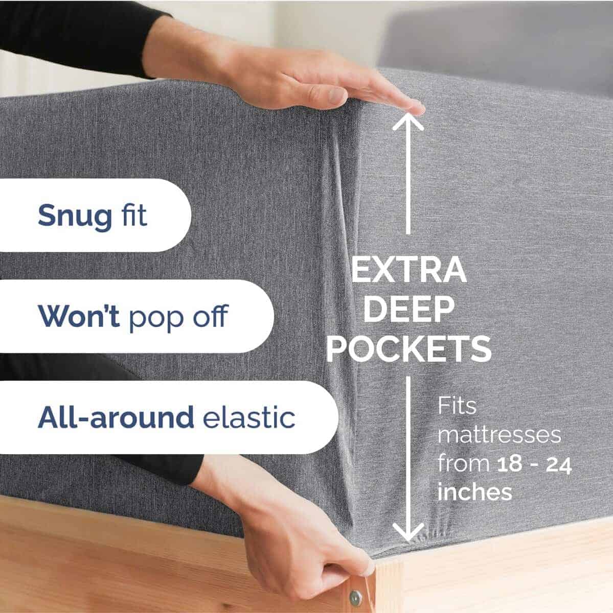 1. Las sábanas king divider color gris jaspeado a menudo se sueltan del colchón mientras duermes y son difíciles de colocar en tu cama, incluso cuando compras el tamaño correcto. En CGK Unlimited, hemos diseñado nuestras sábanas king divider gris jaspeado con bolsillos extra profundos para adaptarse fácilmente a colchones de 18 a 24 pulgadas de profundidad, ¡así que es fácil de poner en la cama incluso con un protector de colchón! nuestras sábanas king divider gris jaspeado ajustables también cuentan con elástico en todos sus bordes para abrazar tu colchón de forma segura!