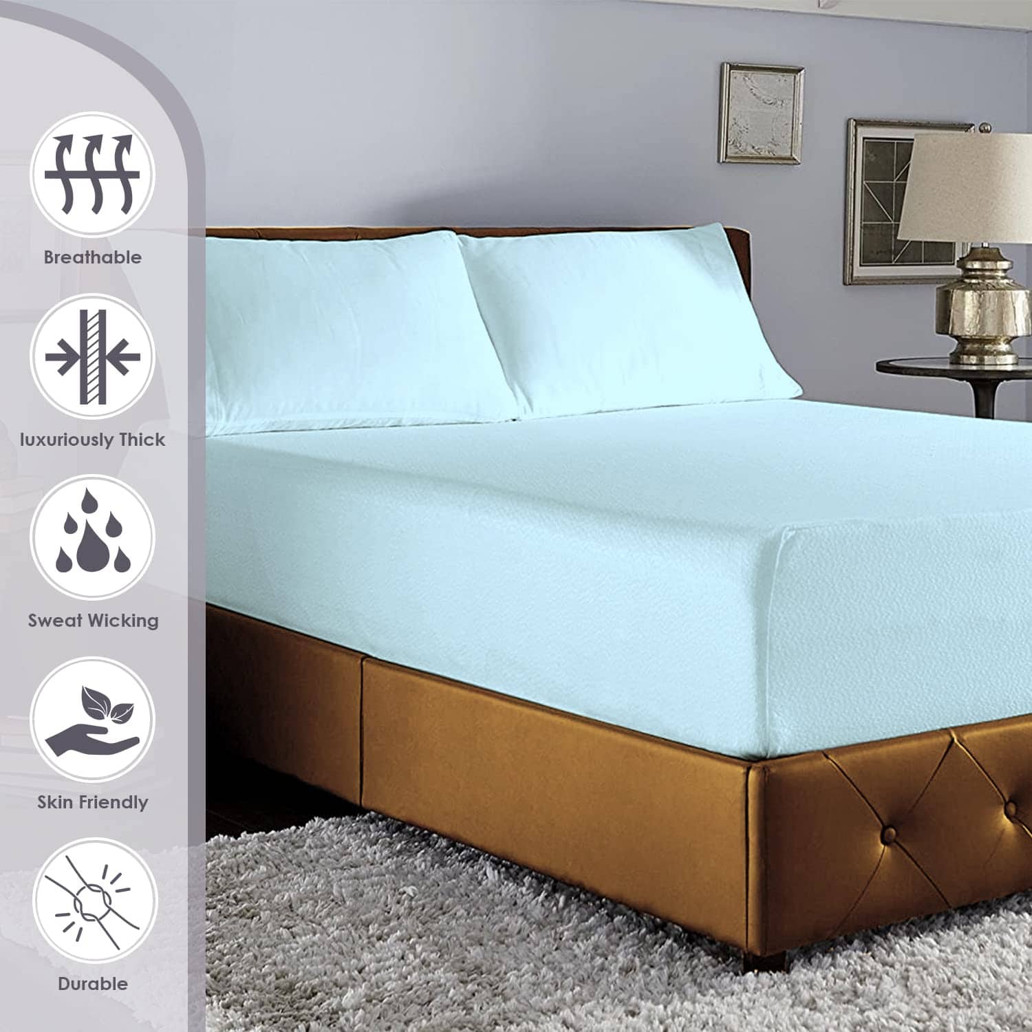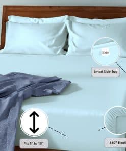 Lujo, transpirable y fresco: Elaborado con 100% algodón de fibra larga peinado, esta sábana ajustable tamaño king de 800 hilos de algodón de fibra larga está hecha con hilo especialmente compactado con su textura de peso medio. El mínimo procesamiento artificial hace que esta sábana king size ajustable sea suave en todo tipo de piel, previene sudores nocturnos, absorbe la humedad y regula la temperatura corporal para dormir fresco mientras mantiene la lujosa apariencia de hotel. Etiqueta lateral inteligente: la etiqueta lateral inteligente en la sábana ajustable king size de bolsillo profundo (78 x 80 + 15) es conveniente en el uso y fácil para colocar la sábana, mientras que el patrón de costura patentado asegura un ajuste cómodo en el colchón de 8 a 15 de grosor que evita que la sábana se salga por la noche. 100% natural y auténtico algodón peinado mercerizado: Con la técnica de hilo fino de Pizuna, esta auténtica sábana ajustable de algodón peinado de 800 hilos presenta un tejido de satén de dentado simple (4 arriba-1 abajo). El uso de algodón peinado mercerizado hace que esta sábana sea resistente y suave. La ropa de cama de algodón puro y natural se arruga, pero es distintivamente más fresca y transpirable. Además, se suaviza y las arrugas se reducen con cada lavado. La promesa de calidad de Pizuna: Los productos de Pizuna son individualmente adaptados, medidos y verificados (pieza por pieza) por nuestro equipo de aseguramiento de calidad. La tela en esta sábana ajustable king size está certificada por OEKO-TEX y AZO-Free (2024), libre de sustancias sintéticas y respetuosa con el planeta, lo que la hace reconfortante incluso para la piel más delicada. Sostenible y responsable: Esta sábana de algodón ajustada cumple con BSCI, es socialmente responsable y respetuosa con el medio ambiente. El uso de materiales reciclados para el embalaje puede añadir un olor desagradable que desaparece después del primer lavado en agua tibia. Hecho con tintes resistentes a la decoloración, se puede lavar a máquina en un ciclo suave, secar a baja temperatura. El uso de lejía puede afectar los colores. Diseñado para un mejor sueño: Nuestros expertos en sueño internos estudian el comportamiento y los patrones de sueño del usuario, lo que resulta en una mejora del producto y un embalaje compacto. Disponible globalmente en múltiples colores y tamaños, esta sábana ajustable king size es la opción perfecta para regalar a sus seres queridos. Cuidado de Pizuna: Miles de familias felices y medios de comunicación han elogiado nuestras lujosas sábanas ajustables. Sin embargo, si no está satisfecho con el producto, puede devolverlo dentro de los 30 días según la política, más allá de eso nuestro equipo de atención al cliente estará allí para asistirlo también.