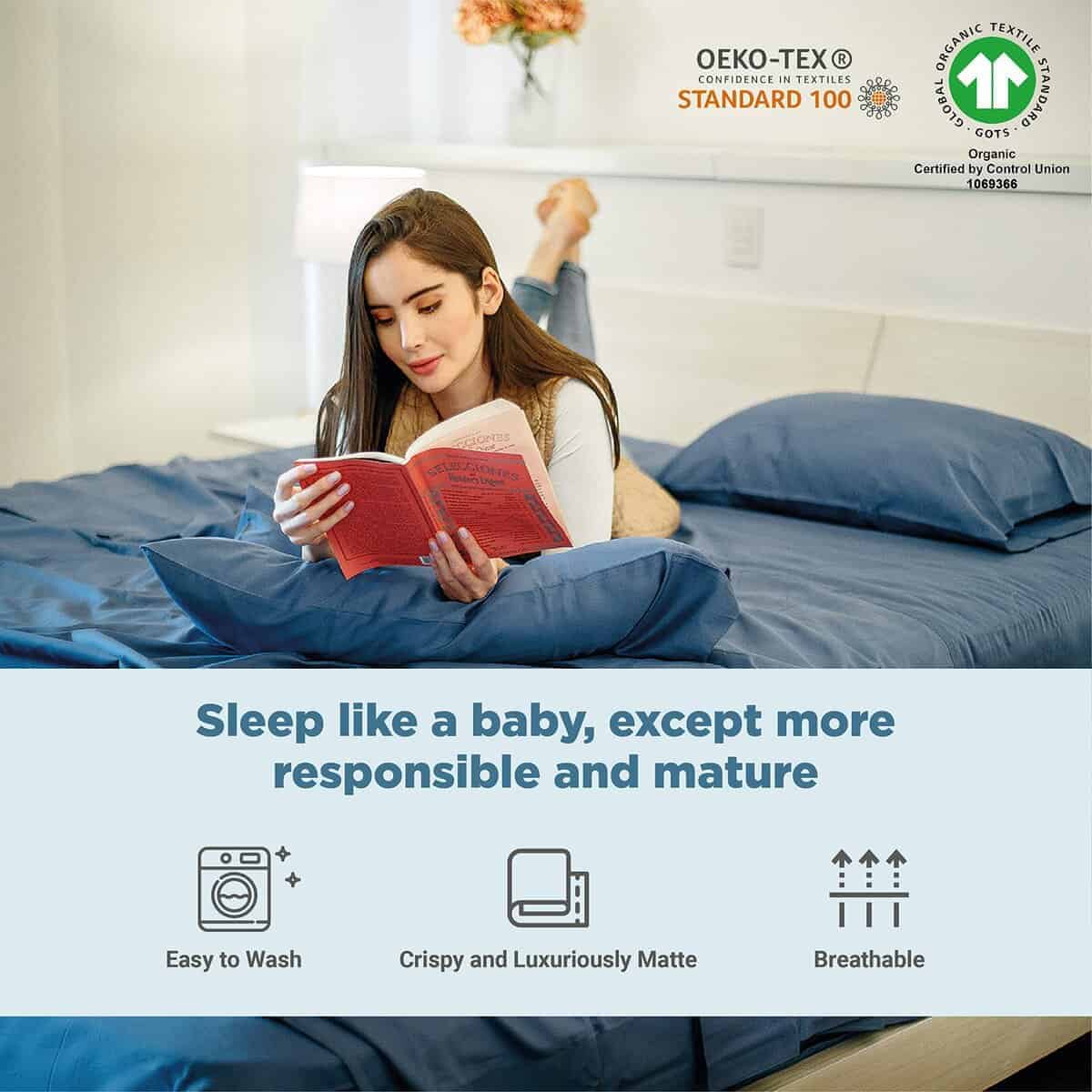 Inicia la indulgencia al entrar en tu dormitorio con la Sábana Ajustable 100% de Algodón Orgánico de Fabdreams. Esta sábana ajustable está cuidadosamente elaborada a partir de algodón orgánico 100% puro certificado GOTS y se teje con el mayor cuidado en nuestras fábricas de comercio justo para preservar la naturaleza orgánica del producto. El lujoso tejido Percale le da a la sábana ajustable una textura fresca, crispada y húmeda desde el primer día. ¡Un verdadero beneficio para los que duermen calientes! El embalaje 100% reciclable con CERO plástico utilizado incluye 1 Sábana Ajustable King Size (78″ x 80″ x 17″) con bolsillo profundo para adaptarse a colchones de hasta 17″. Esto viene empaquetado en una decadente bolsa reutilizable de tela de cortesía para ti de FABDREAMS. El algodón orgánico se obtiene directamente de los agricultores para hacer esta hermosa sábana ajustable en casa. Esta sábana ajustable está hecha usando un tejido PERCALE, que le da a la sábana atributos de frescura y crispado. ¡Descansa tranquilo, un verdadero beneficio para aquellos que odian dormir caliente! El algodón orgánico se produce utilizando semillas 100% naturales, por lo que no se utilizan sustancias químicas nocivas. El algodón tradicional se cultiva en el mismo suelo repetidamente, lo que deteriora la calidad del suelo, elimina todos los nutrientes naturales y conduce a una cosecha de cultivos poco saludable. El algodón orgánico se rota de un suelo a otro, por lo que los nutrientes naturales retienen agua por más tiempo, lo que significa que la tierra requiere menos riego y produce juegos de sábanas sostenibles. Esta sábana ajustable es una elección de regalo ética y respetuosa con el medio ambiente para todas tus ocasiones especiales: Día de Acción de Gracias, Navidad, Cumpleaños, Bodas y Aniversarios. Más que cualquier ocasión, ¡es el mejor regalo que puedes darte a ti mismo, a tu familia y a los que intentan ser orgánicos y salvar el planeta!