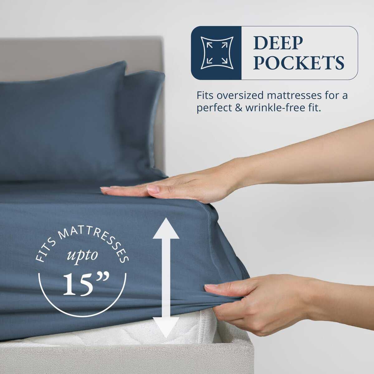 Siéntete abrazado por un ajuste seguro como nunca antes con el elástico en todo el contorno de la sábana ajustable, que se ajusta a colchones de hasta 15″ de profundidad. No más luchas con las esquinas, simplemente disfruta de una comodidad pura y acogedora.