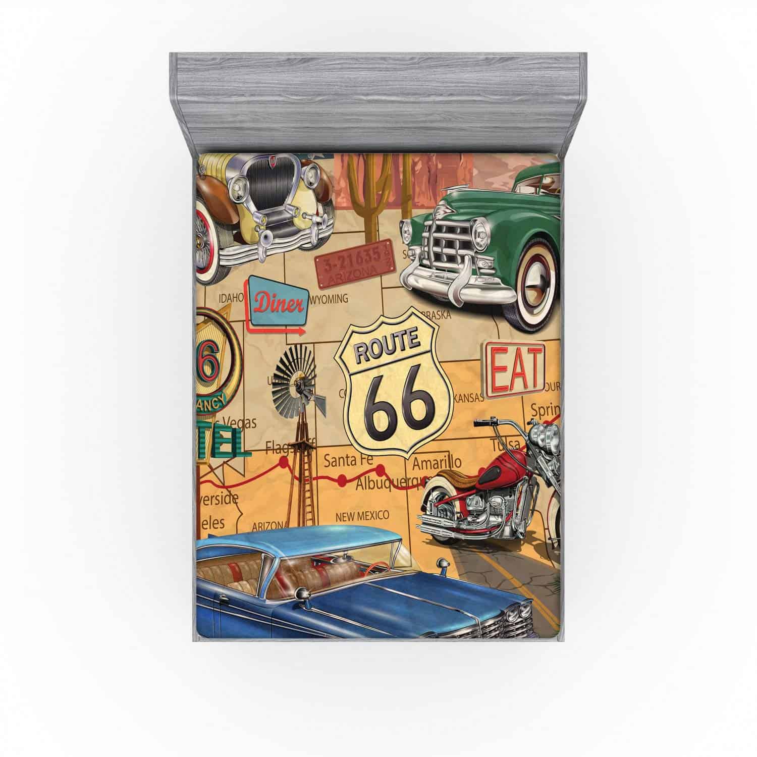 Sábana Ajustable Lunarable Route 66, Coches Antiguos y