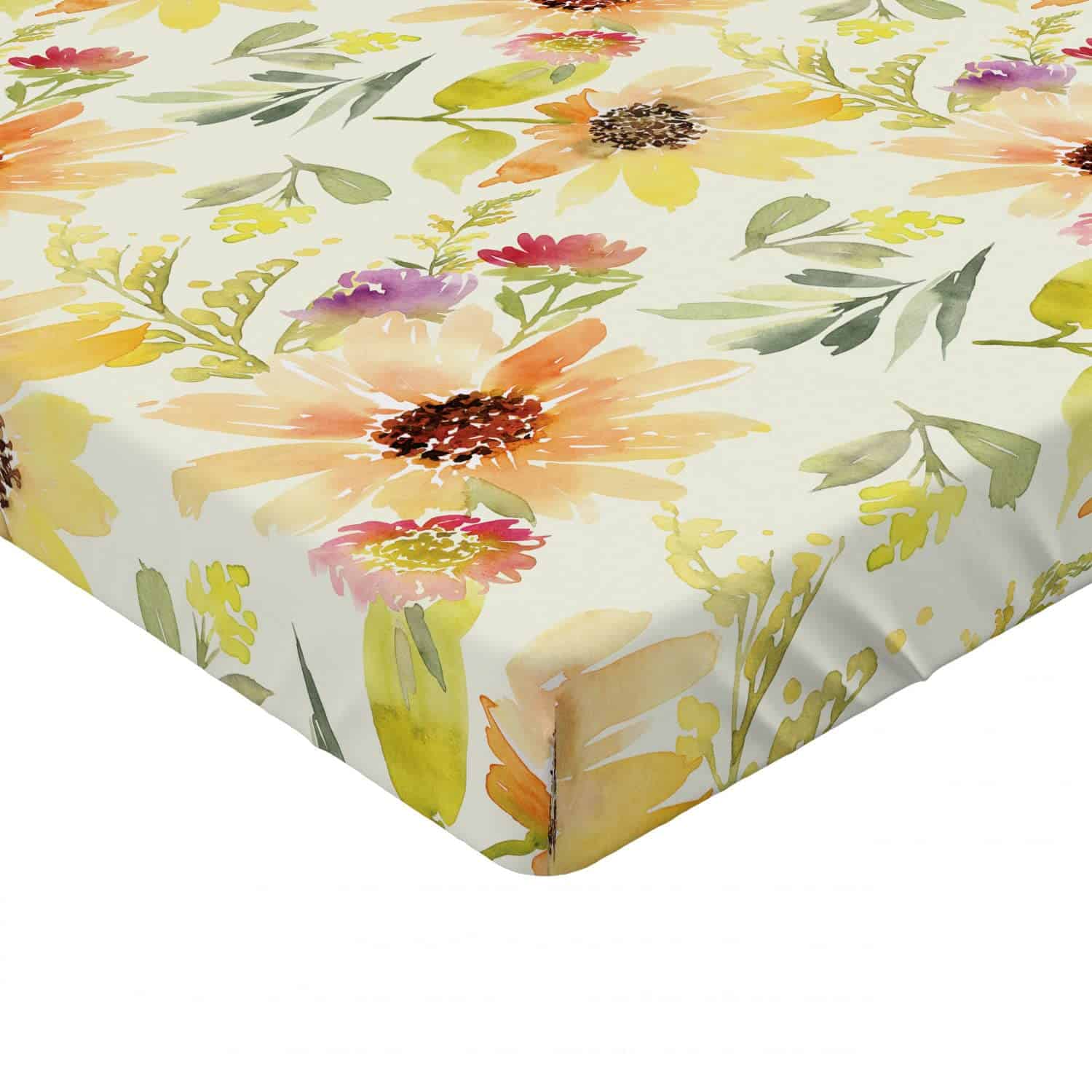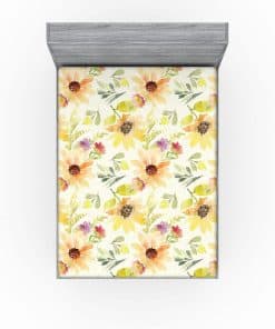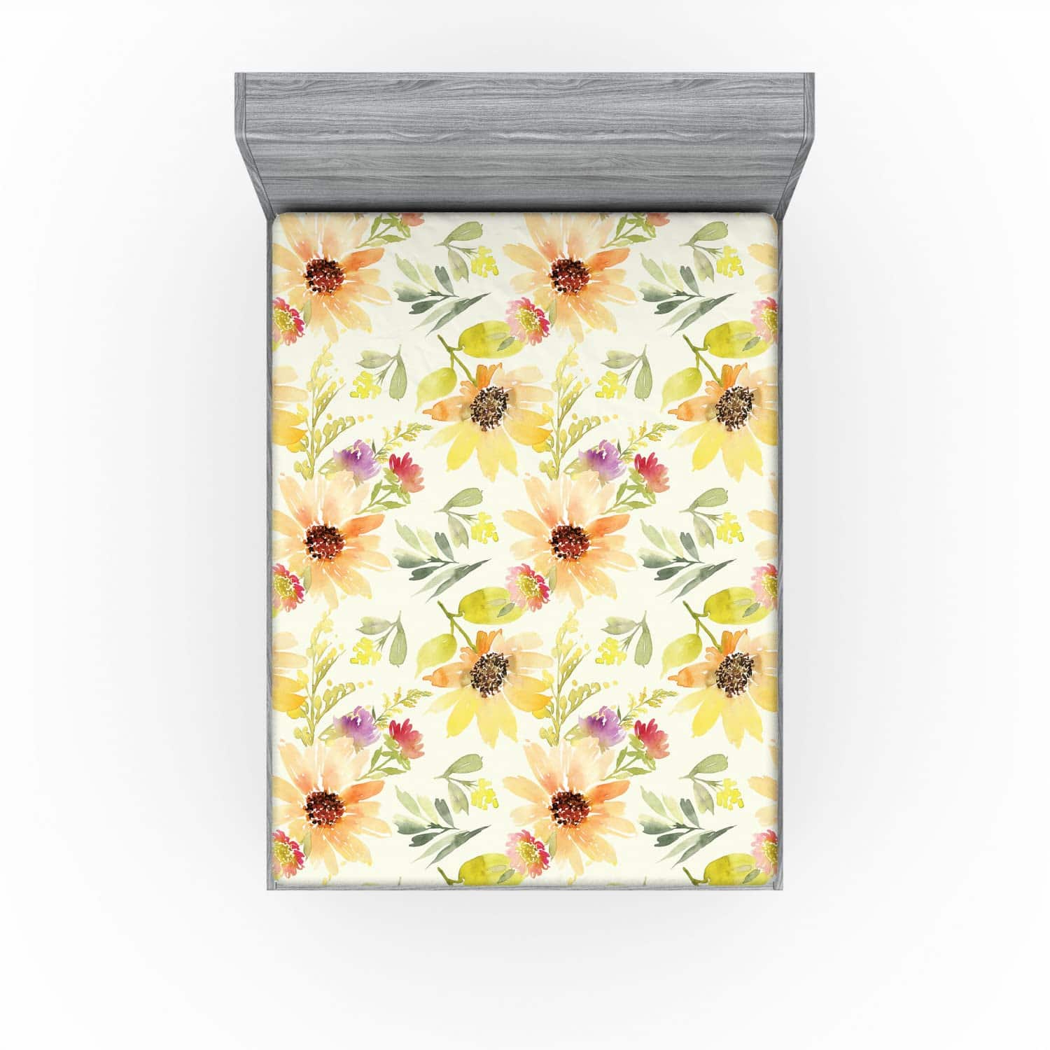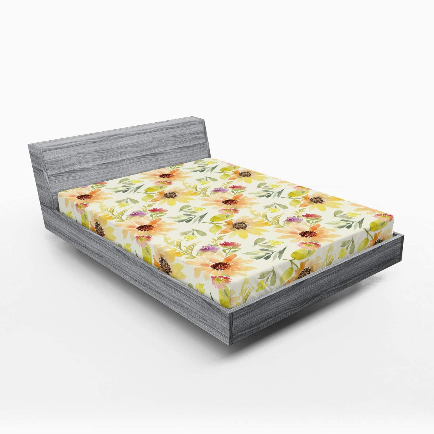 Sábana Ajustable Lunarable Watercolor Flower, -Naranja Crema