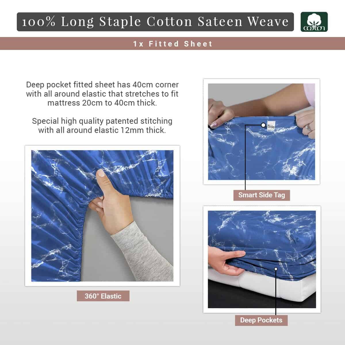 La sábana ajustable Pizuna Pure está fabricada con algodón 100% natural de alta calidad, con un tejido de 400 hilos en una sutil combinación de colores en mármol azul. Su diseño incluye una etiqueta lateral inteligente que facilita su colocación en el colchón, garantizando un ajuste perfecto gracias a su patrón de costura patentado. Esta sábana individual es suave, fresca y absorbente, ideal para regular la temperatura corporal y prevenir sudores nocturnos. Además, es respetuosa con la piel y el medio ambiente, siendo una opción responsable y duradera para tu ropa de cama. Disponible en diversos colores y tallas, es el regalo perfecto para tus seres queridos.
