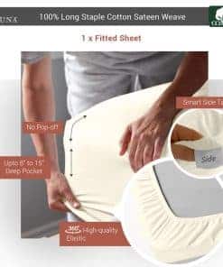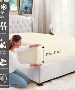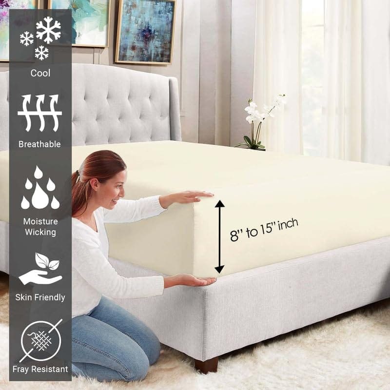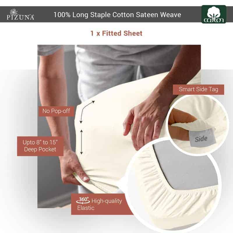 Sábana Ajustable Pizuna Pure 100% Algodón Ivory, Lujoso