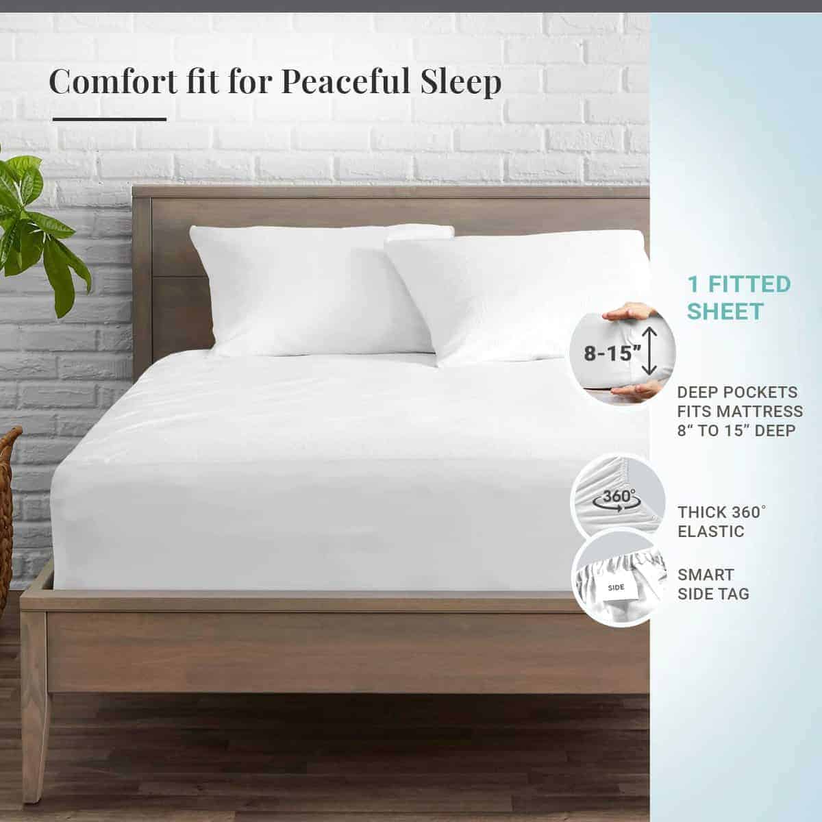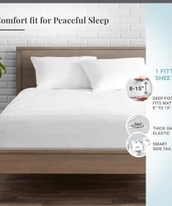 Sábana Ajustable de Algodón para Tamaño Queen de Pizuna: Disfruta de la comodidad y la durabilidad con la sábana ajustable de algodón 100% tamaño queen de Pizuna. Hecha con algodón de fibra larga peinado y tejido con una sarga de 600 hilos, esta sábana ajustable es suave, fresca y transpirable. El bolsillo profundo de 15 pulgadas hace que sea fácil de colocar en colchones de hasta 15 pulgadas de grosor. El diseño inteligente de la etiqueta lateral garantiza un ajuste perfecto que evita que la sábana se salga en la noche.
