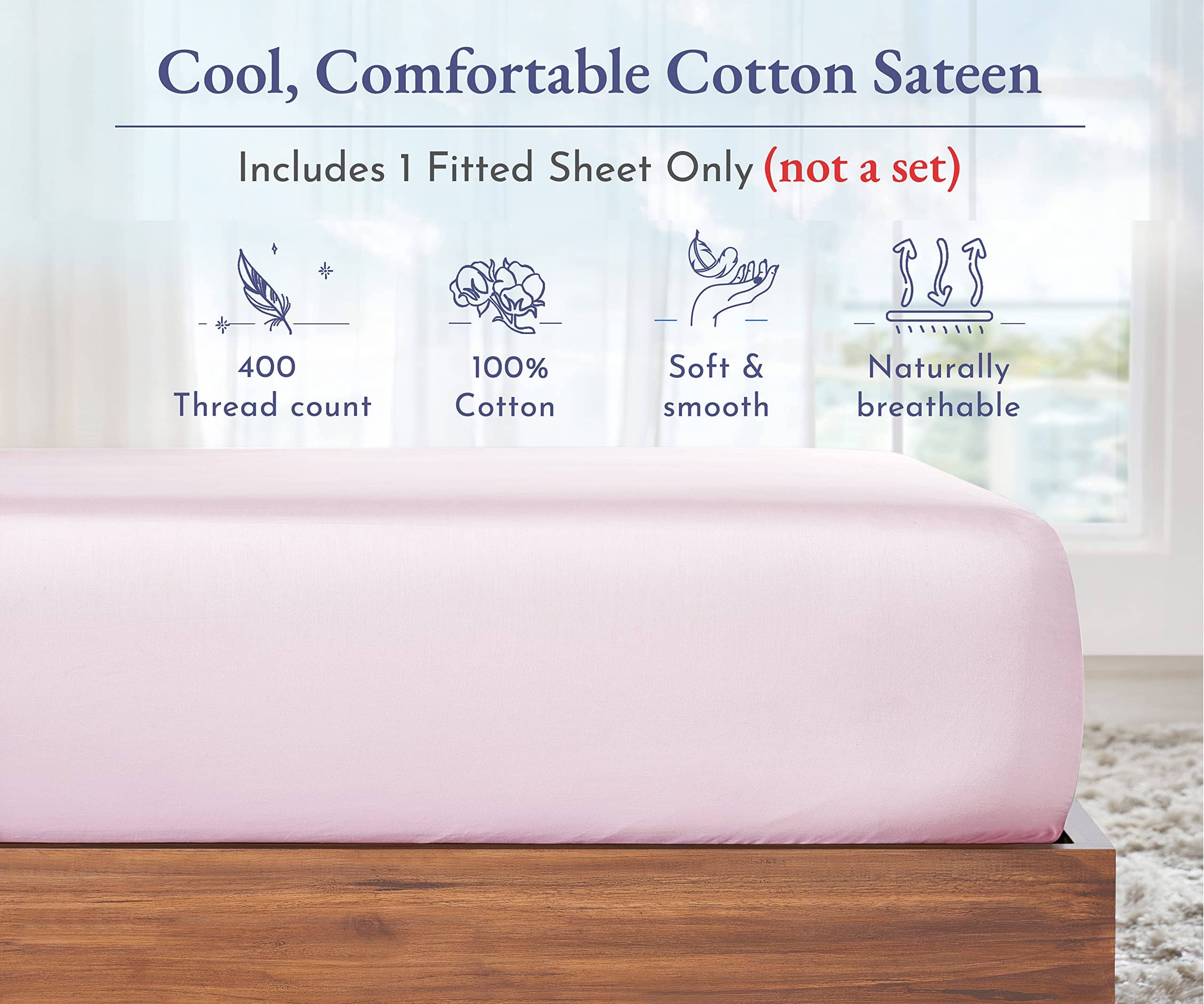 Sábana Ajustable Queen de Algodón Suave, 100% Algodón, 400