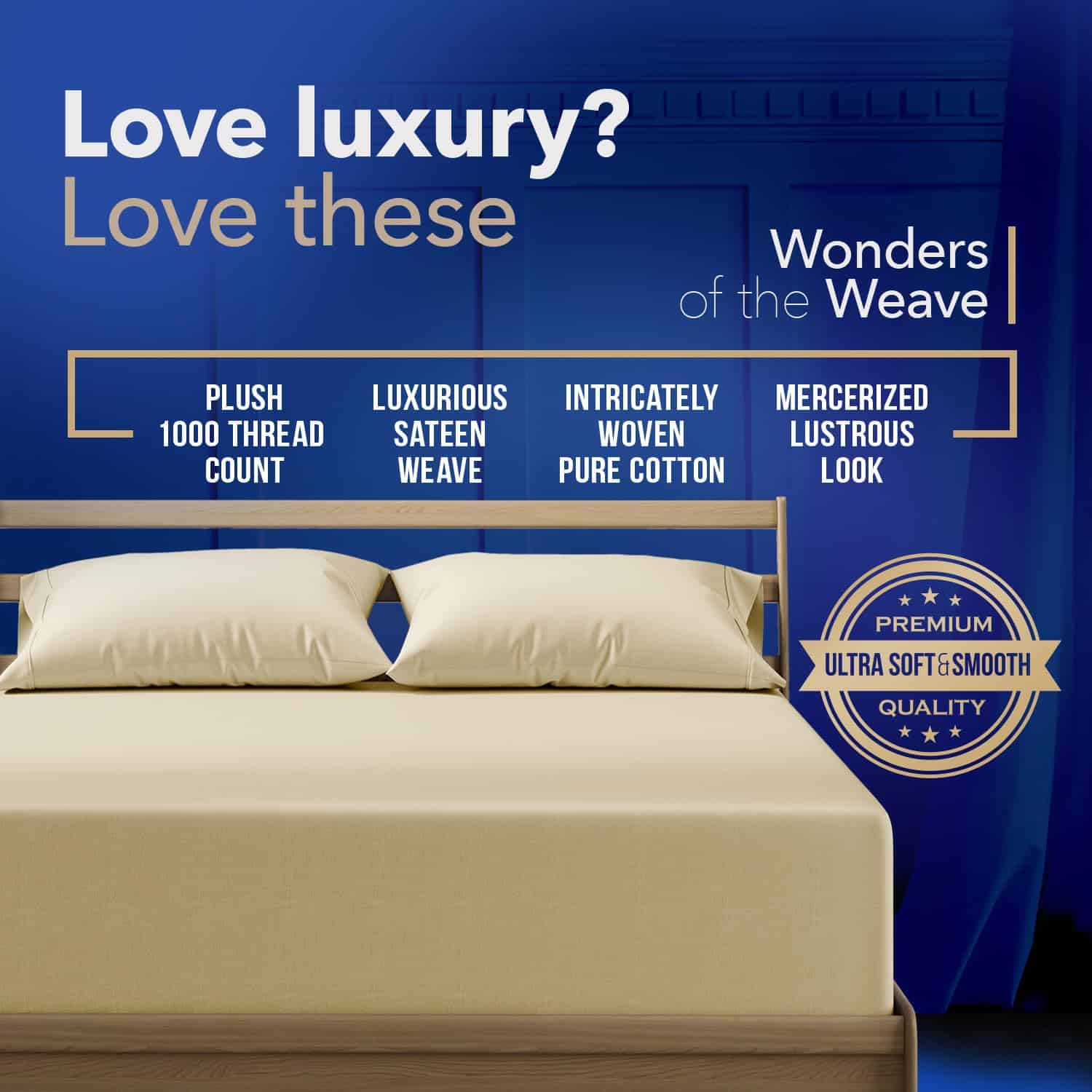 1. Sábana Ajustable de Algodón Egipcio 100% Suave y Sedosa: Lujo puro. Confort y suavidad incomparables. Conoce la sábana ajustable de 1000 hilos de Texas Linen Co. Hecha con fibras de algodón egipcio más largas y finas (no algodón regular), nuestra sábana ajustable queen con bolsillo profundo es la sábana más suave y duradera que encontrarás. Los finos y sedosos hilos acarician tu cuerpo para el sueño más relajante y rejuvenecedor. Cómo un paquete de atención de nosotros, para ti.