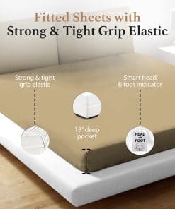 Sábana Ajustable Queen Good Sleep Bedding – 100% algodón egipcio, suave y transpirable, bolsillo profundo de 16 pulgadas, estilo hotelero 800 hilos – Taupe. Nuestras hermosas sábanas ajustables queen están confeccionadas con 100% algodón egipcio. Disfruta de la suavidad y transpirabilidad de estos 800 hilos de sábanas queen con un bolsillo extra profundo que rivaliza con el satén. Elástico fuerte alrededor para ajustarse perfectamente a colchones queen con hasta 16 pulgadas de profundidad. Ideal para quienes buscan sábanas refrescantes y que se mantengan en su lugar. Hecho de algodón egipcio de fibra larga con un tejido de satén que rivaliza en suavidad con la sábana satinada. Duradero y resistente, resistente a lavados repetidos para brindarte una experiencia confortable duradera. Prácticas etiquetas indicadoras de cabeza y pies para facilitar la tarea de hacer la cama. Combínalo con fundas de almohada a juego y una manta de waffle de nuestra colección para darle a tu habitación un toque estilizado. Con nuestras sábanas ajustables queen de bolsillo profundo, sentirás la diferencia. Transpirables y cómodas, son esenciales para cualquier hogar moderno.