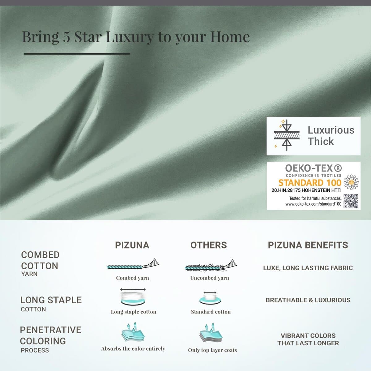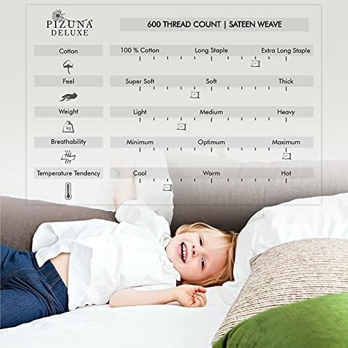 La cantidad de hilos se refiere al número de hilos horizontales y verticales por pulgada cuadrada. En general, cuanto mayor es la cantidad de hilos, más suave es la sábana y es más probable que se use bien, o incluso se suavice con el tiempo. Las buenas sábanas varían en cualquier lugar entre 200 y 1000, Nuestro set de Sábanas de 600 Hilos de Algodón 100% de Pizuna Linens es el producto perfecto para cualquier persona que busque sábanas ultra suaves que aún mantengan la durabilidad y la calidad de las ropa de cama de lujo de alta cantidad de hilos a un precio razonable. Recomendamos lavar antes de usar y estas sábanas literalmente se volverán más suaves con cada lavado, por lo que no hay límite para la cantidad de confort que proporcionarán. Ya sea que las sábanas sean un regalo para un amigo o que las compres para ti mismo, sabes que estás obteniendo lujo de alta calidad con Exceptional Sheets.