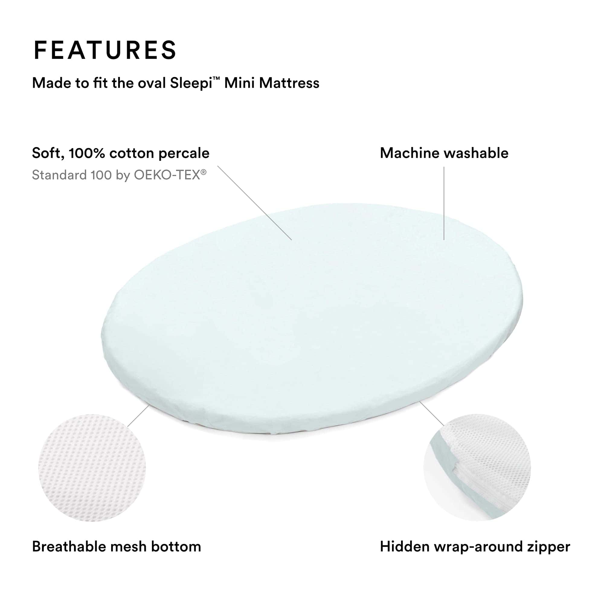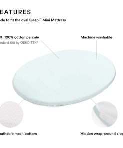 1. SÁBANAS SUAVES – Tu pequeño dormirá plácidamente en nuestra hermosa colección de sábanas ajustables de algodón suave. Hechas para adaptarse a la forma única de nuestro colchón ovalado Sleepi Mini, nuestras sábanas ofrecen la máxima comodidad y son suaves en la piel de tu recién nacido.