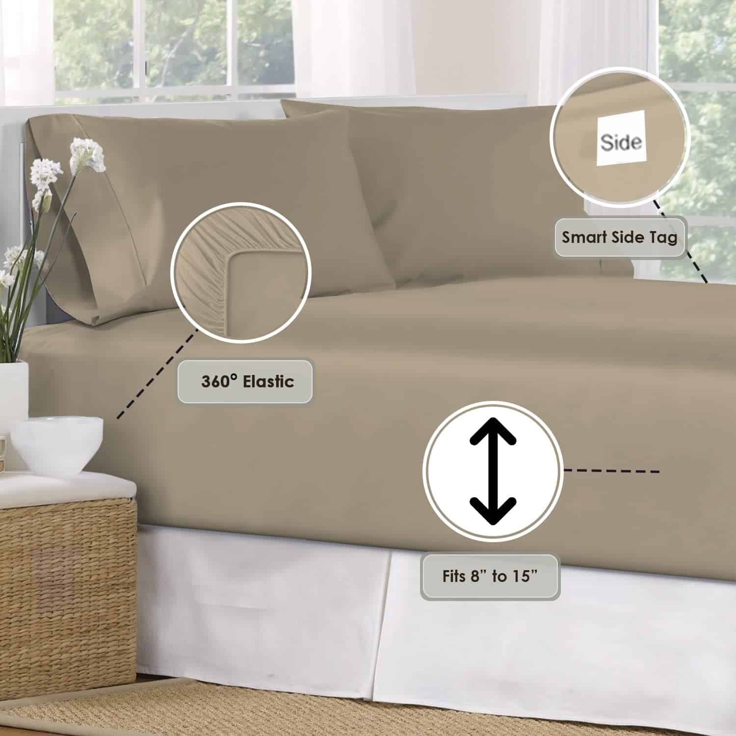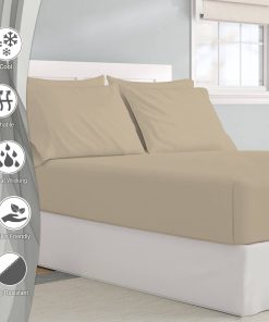 Sábana Ajustable Tamaño King de Algodón 100%, Color Taupe,