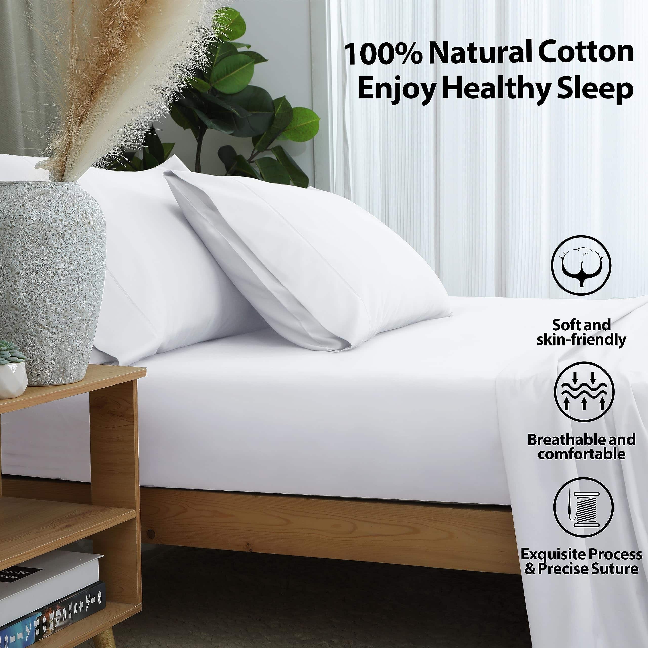 Sábana Ajustable Tamaño King en Blanco, 100% Algodón