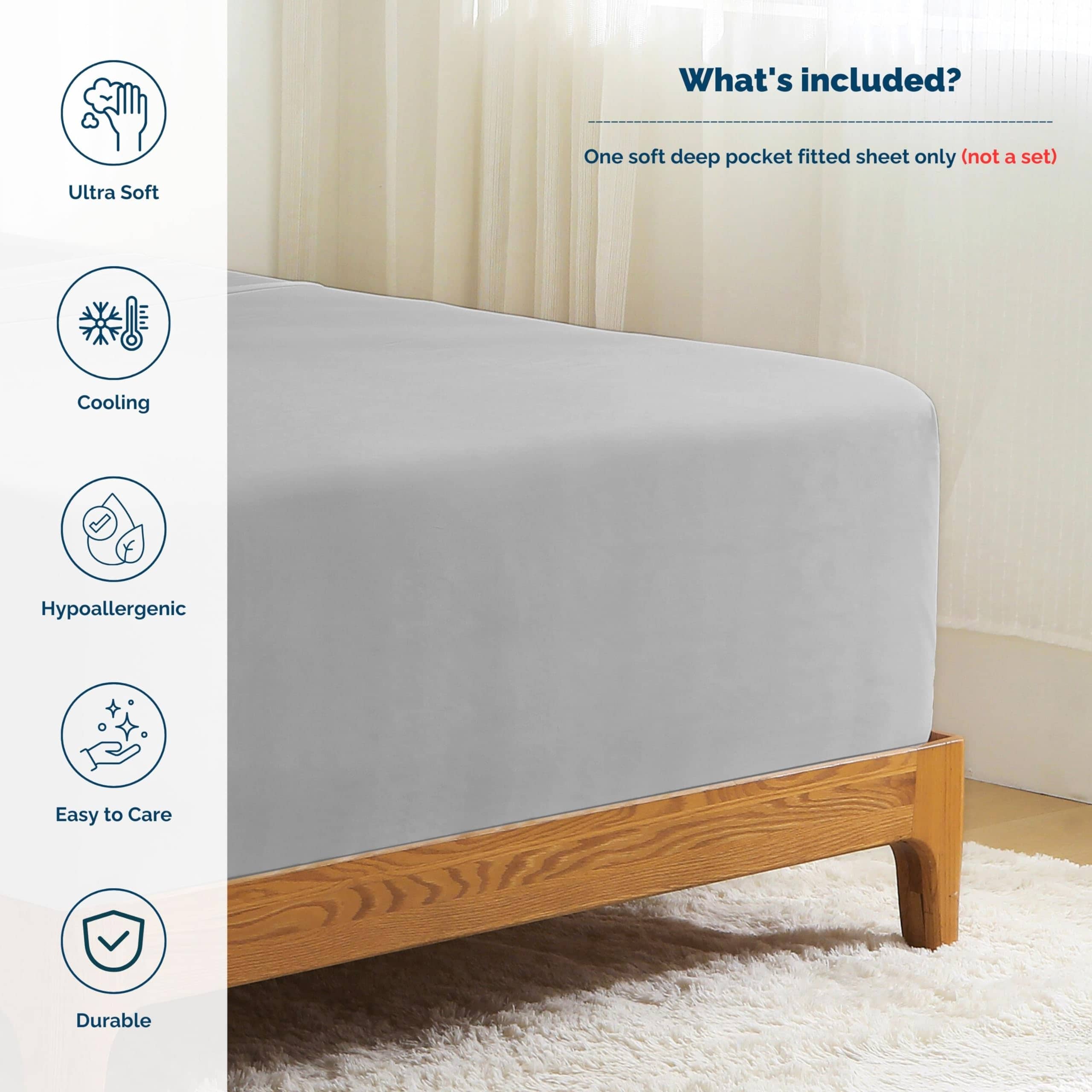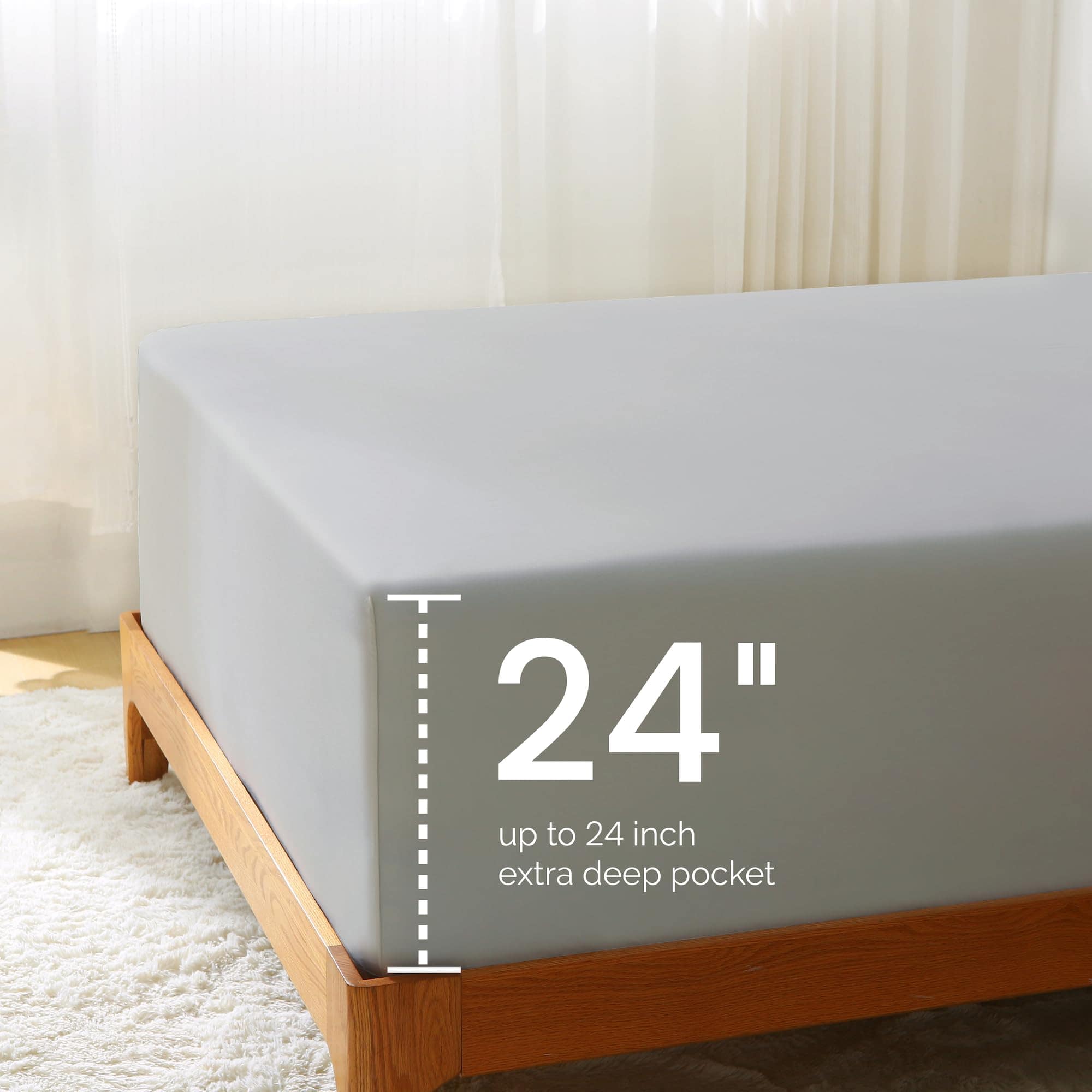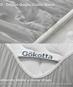 Sábana Ajustable Tamaño King GOKOTTA – 100% Rayón Derivado de Bambú, Sábana con Bolsillo Extra Profundo de 24 Pulgadas, Sábana Inferior Súper Suave con 4 Correas Elásticas en las Esquinas. Ajuste seguro para colchones gruesos: la sábana ajustable está diseñada con un generoso bolsillo extra profundo de 21-24 pulgadas para garantizar un ajuste ceñido incluso en los colchones más gruesos. Sábana ajustable con correas elásticas en las esquinas, esta sábana antideslizante se mantiene segura en su lugar durante toda la noche, brindando comodidad y estabilidad. 300 Hilos: con un recuento de 300 hilos, le brinda un tacto más suave, fresco y transpirable, haciendo su sueño más cómodo y evitando que se despierte debido al sudor. enfriamiento para personas calurosas, actualice su estilo de sueño. CERTIFICADO OEKO-TEX: los proveedores de tela de GOKOTTA están certificados con los estándares OEKO-TEX 100, asegurando que la tela y el hilo utilizados en nuestros productos se someten a pruebas rigurosas de sustancias dañinas y cumplen con estrictos requisitos de seguridad y ambientales.