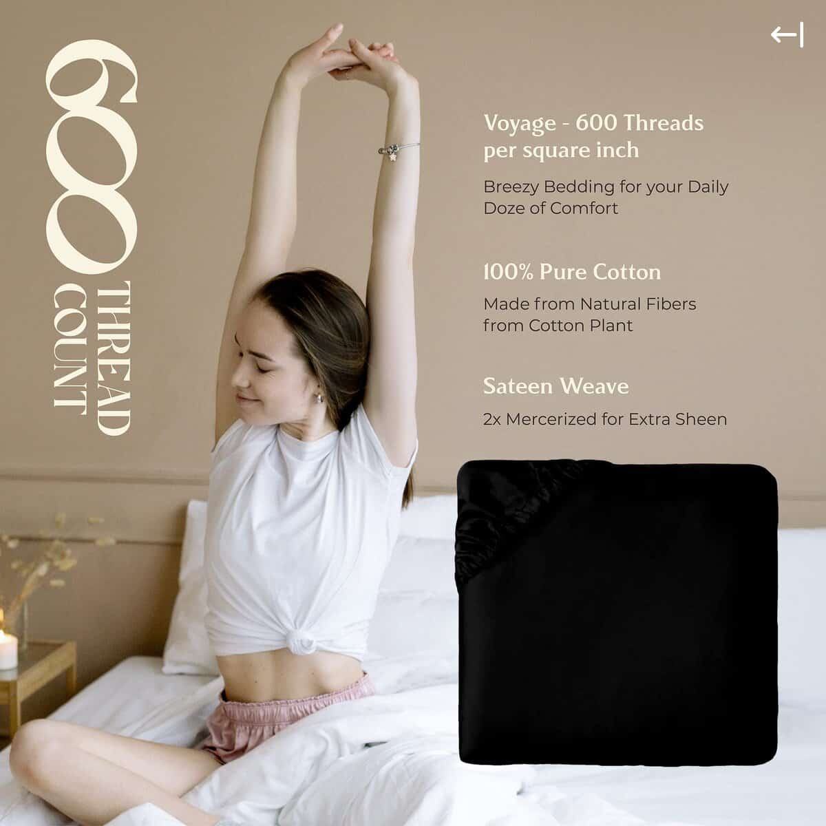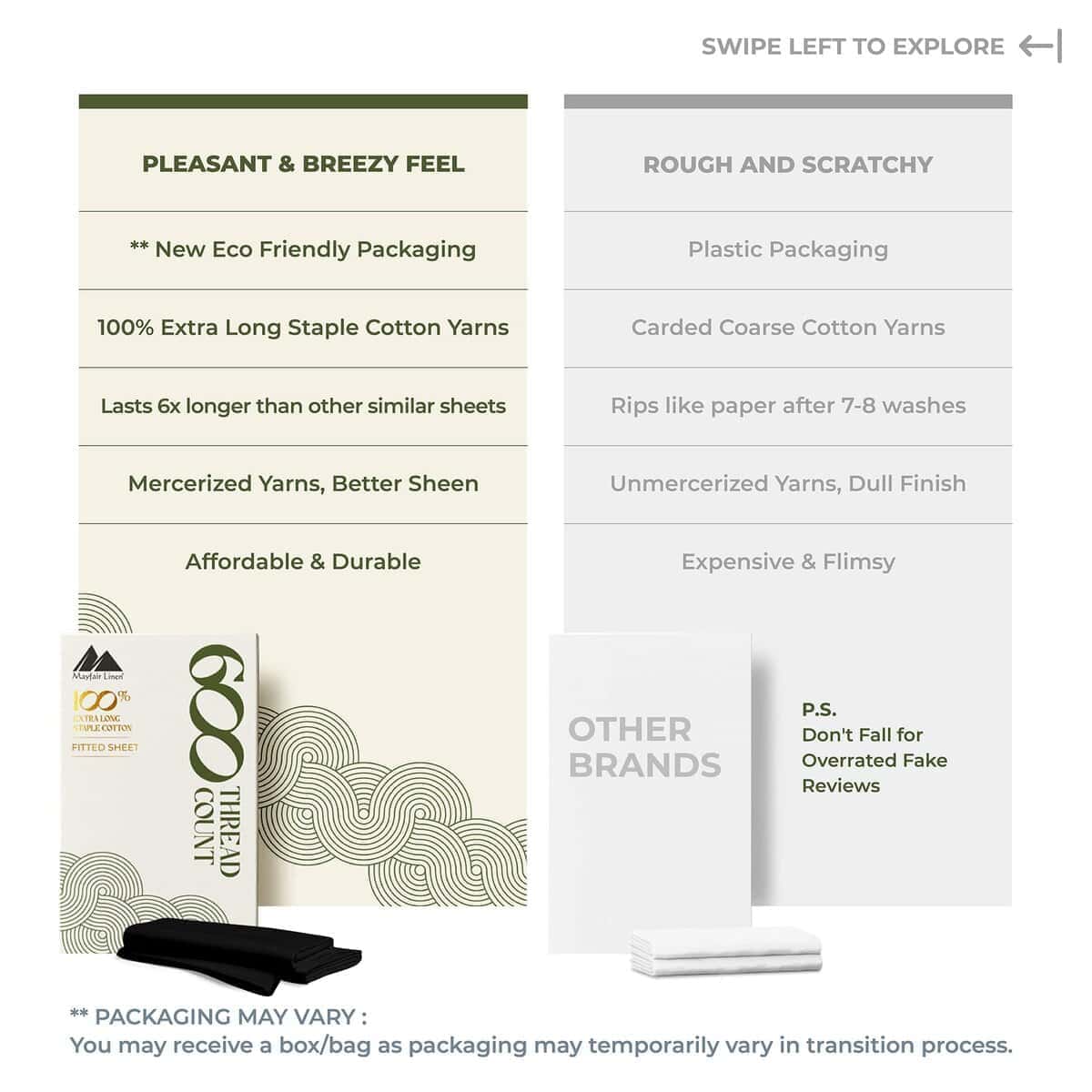 2. 6 veces más duradero que otras sábanas de 600 hilos: mientras más largas sean las fibras de algodón, más suaves serán las sábanas. Usamos fibras de algodón de fibra larga extra con un tejido satén para hacer las sábanas más suaves y duraderas. Agregamos un paso más: mercerización. Esto hace que nuestra sábana ajustable queen sea más sedosa al tacto, resistente a la formación de bolitas y decoloraciones, y con una calidad de tinte mejorada. 3. Certificado OEKO-TEX y confiado por más de 1 millón de clientes: obtenemos algodón puro que crece naturalmente sin sustancias perjudiciales y sintéticos. El algodón es ecológico, te mantiene fresco y transpirable, y es mejor para el medio ambiente, a diferencia del microfibra y otras telas. Además, nuestra certificación ESTÁNDAR 100 de OEKO-TEX es una garantía de que nuestras sábanas ajustables queen están libres de sustancias nocivas, lo que las hace ideales para niños y adultos con piel sensible. 4. Lavado regular a máquina + cuidado: fabricadas con tintes orgánicos de alta calidad, nuestra sábana ajustable de algodón egipcio no se decolora en el lavado. Son resistentes a la formación de bolitas y al encogimiento. Lo mejor de todo es que estas sábanas de algodón egipcio de calidad se abren en pocos lavados y se vuelven más suaves. Recomendamos lavar nuestra sábana ajustable queen una vez por semana en un ciclo suave y secar a baja temperatura. 5. Haz que las ocasiones sean especiales: haz que tus Navidades, Día de San Valentín, Halloween, Día de la Madre, Día del Padre, bodas y festividades de otoño sean especiales con el regalo de las sábanas suaves y refrigerantes. Combínalas con un edredón, funda de edredón, sábana inferior / superior, fundas de almohada, cubrecolchón y otros accesorios de dormitorio para el mejor sueño.