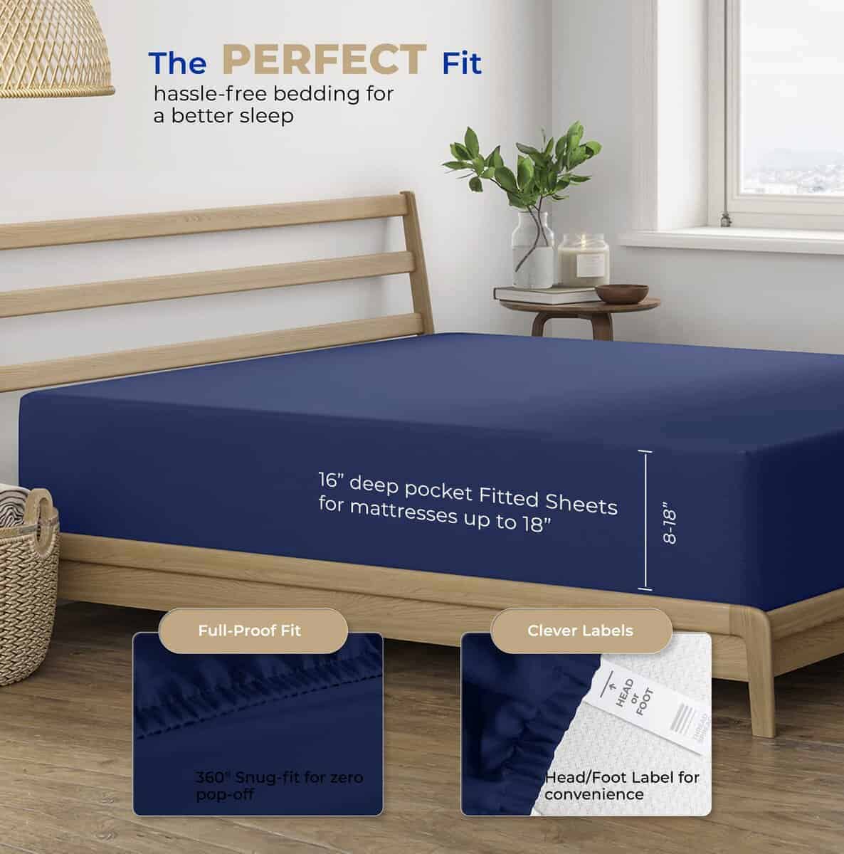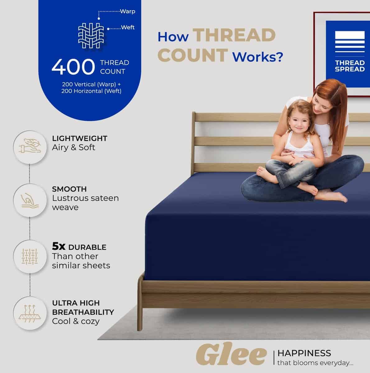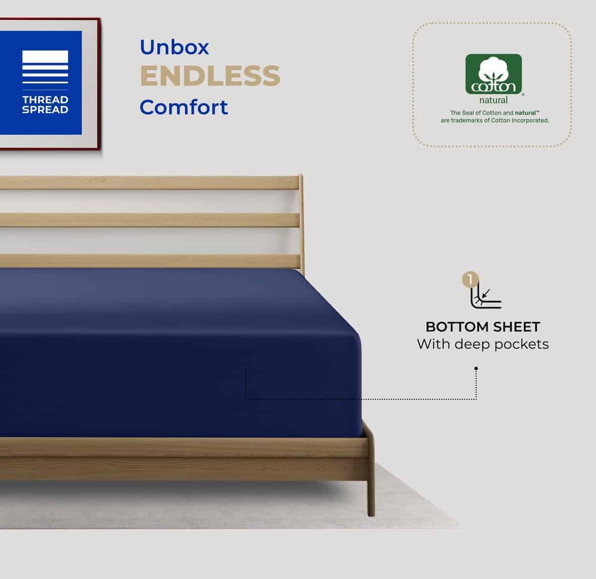 Sábana Ajustable Thread Spread 100% Algodón -Azul Marino