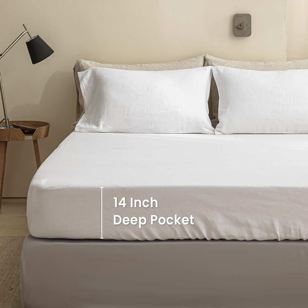 1. TAMAÑO KING 1 x Sábana Ajustada: 78»x 80»x14». Aplicado en una variedad de ocasiones y usos: su hogar dulce hogar, regalo de aniversario/boda/día de acción de gracias/navidad/presente para sus padres/hijos/familiares o amigos. 2. MATERIAL Hecho de Tela de Lino Francés de Calidad Premium al 100% con Lavado Previa, 160 GSM (Para hacer la tela suave, el proceso de prelavado causará un encogimiento incontrolable, por lo que el GSM final tendrá una desviación del 5% más o menos). Nuestros productos de lino han sido certificados de acuerdo con el ESTÁNDAR 100 de OEKO-TEX, lo cual es respetuoso con el medio ambiente. La sábana ajustada de lino puede brindarle una vida más saludable y un sueño más cómodo, duradero por un largo periodo. 3. VENTAJA Sensación de frescor única y transpirable en verano, sin preocupaciones por sudoración; También una gran elección para el invierno, maravillosamente cálido. La conductividad térmica y la absorción de humedad son mayores que en la tela de algodón, obtendrá un excelente descanso nocturno. Buena solidez de color, no se decolora fácilmente. Esta sábana ajustada de lino superará todas sus necesidades. 4. INSTRUCCIÓN DE USO Lavado en ciclo suave a menos de 60 . No use detergentes que contengan blanqueadores o blanqueadores. Secar en secadora con calor medio. Planchado cálido si es necesario. No lavar en seco. Lavar con colores similares. La tela de lino se volverá más suave después de cada lavado. 5. 1 Pieza Sábana Ajustada que incluye 1 Sábana Ajustada de Bolsillo Profundo. La profundidad de la sábana ajustada es de aproximadamente 14 pulgadas. El elástico envuelve toda la sábana ajustada.