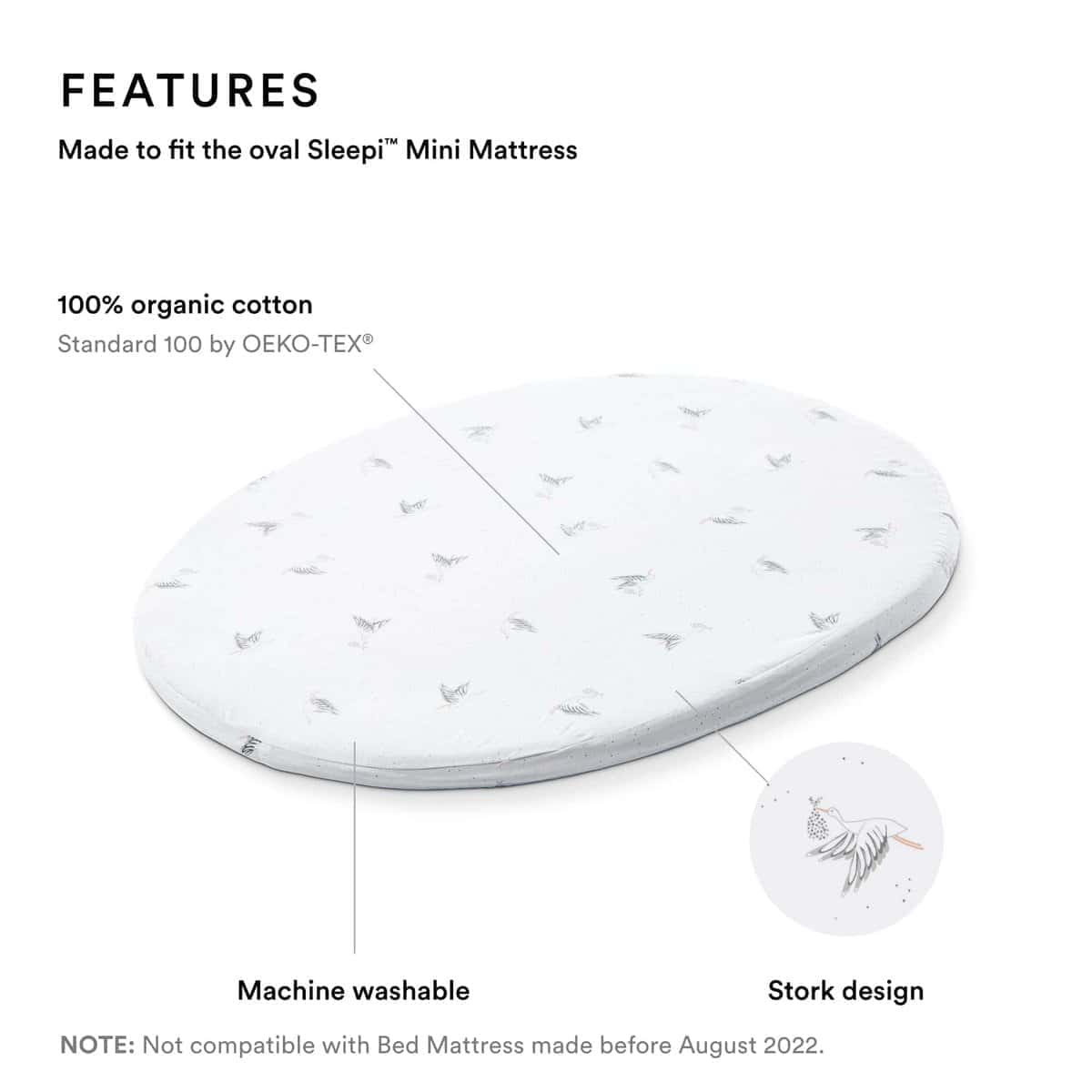 2. COMPATIBILIDAD – Esta sábana ajustada V2 está diseñada para adaptarse al colchón ovalado Sleepi Mini, no es compatible con colchones Mini fabricados antes de agosto de 2022.