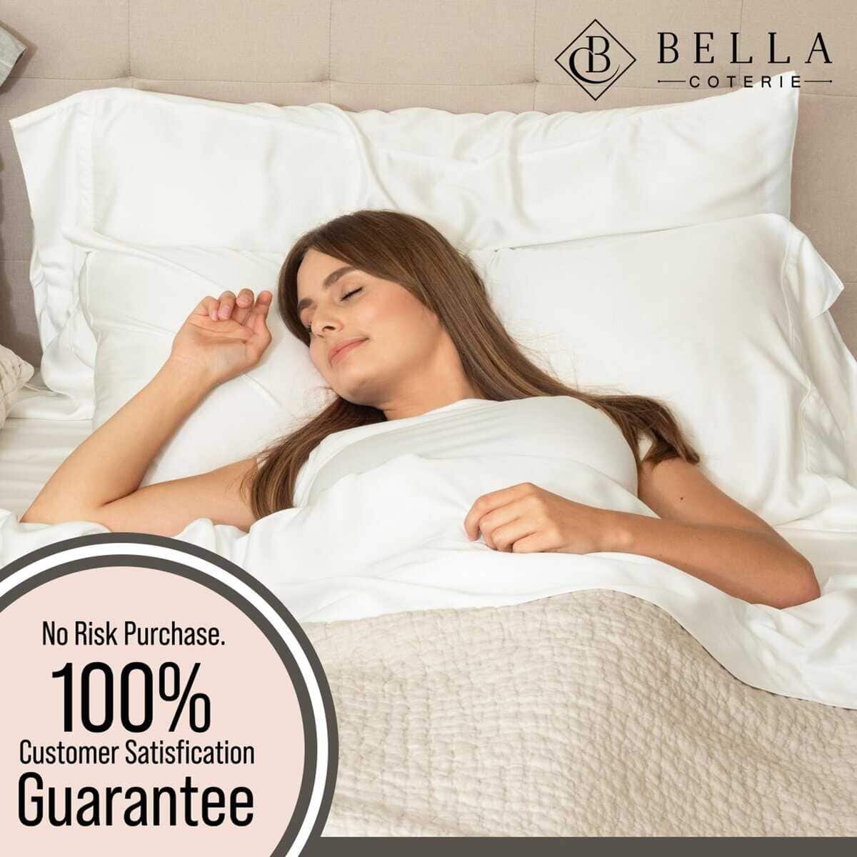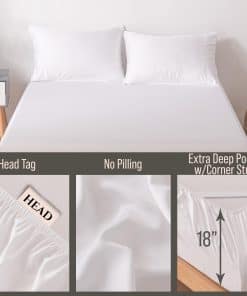 Embrace yourself in the luxury of 100% viscose made from bamboo sheets and you will wake up feeling renewed and refreshed. Lightweight and silky, hypoallergenic and moisture-wicking, these sheets keep you cool in summer and warm in winter. With a 400 thread count, the superior quality of these viscose derived from bamboo sheets are a dream to sleep on, getting softer with every wash. The 18″ extra deep pocket fitted sheet will fit even the most plush pillow top mattresses. You can rest well in luxury bedding knowing that your sheets have been tested and certified to be free of over 100 harmful chemicals with the OEKO-TEX 100 certification. Enhance every part of your relationship as you cozy up with your loved one and enjoy the silky, soft, woven bliss of viscose made from bamboo. Add to cart with confidence in our 100% Customer Satisfaction Guarantee!