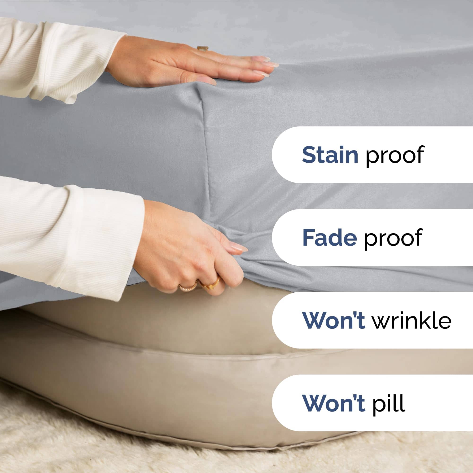 2. A diferencia de las sábanas azul acero split king baratas que son tan delgadas que se puede ver a través de ellas, nuestra sábana bajera split king está hecha de tela de doble cepillado de calidad premium que está diseñada para durar. Nuestras sábanas azul acero split king de bolsillo profundo son lavables a máquina y están especialmente tratadas para resistir desgarros, encogimientos, arrugas, manchas y decoloraciones, por lo que puedes lavarlas sin preocupaciones.