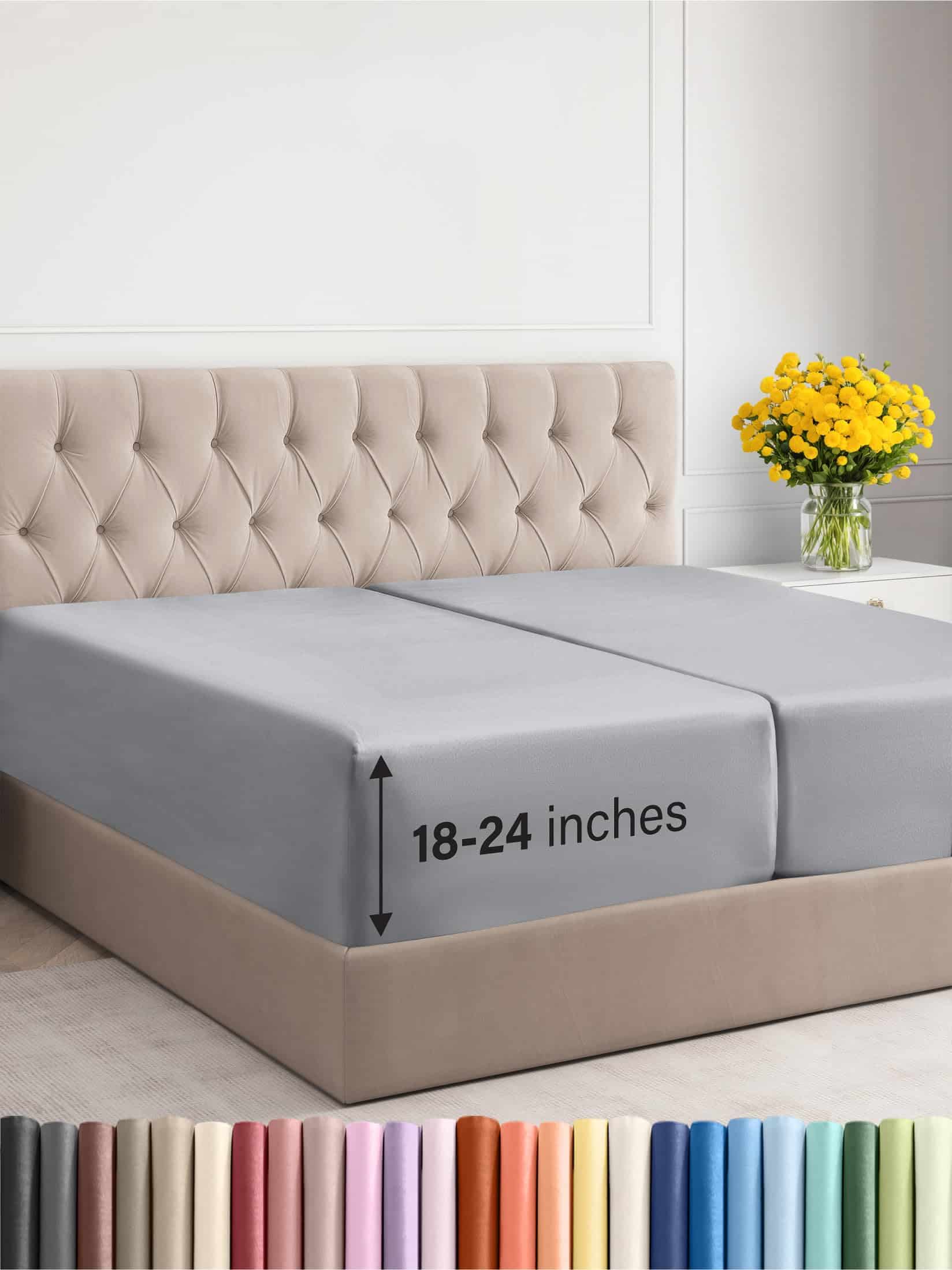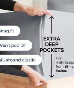 1. Las sábanas split king en azul acero a menudo se sueltan del colchón mientras duermes y son difíciles de colocar en tu cama, incluso cuando compras el tamaño correcto. En CGK Unlimited, hemos diseñado nuestras sábanas azul acero split king con bolsillos extra profundos para adaptarse fácilmente a colchones de 18 a 24 pulgadas de profundidad, por lo que es muy fácil de poner en la cama, incluso con un topper de colchón. Nuestras sábanas divididas azules king también cuentan con elástico en todo el borde para abrazar el colchón de forma segura!