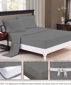 Sé dueño/a del dormitorio más elegante y cómodo con nuestra sábana ajustable con cremallera tamaño King en un deslumbrante color gris oscuro. Con un bolsillo profundo de 16 pulgadas, nuestra sábana ajustable se ajusta perfectamente al colchón sin deslizarse, desplazarse, amontonarse o despegarse. Hecha con una mezcla de algodón/poliéster de alta calidad, esta sábana ajustable es suave, duradera y lujosa. Los colores vibrantes y el diseño elegante te permiten crear un dormitorio de ensueño. Además, nuestra sábana ajustable está fabricada éticamente para garantizar la máxima calidad. Cada pulgada de tela se ha inspeccionado minuciosamente para cumplir con los estándares de rendimiento del producto. Nuestra sábana ajustable es fácil de cuidar, se puede lavar a máquina y secar a baja temperatura. Disfruta de la comodidad y el lujo dignos de un hotel con nuestras sábanas ajustables con cremallera Comfort Beddings.