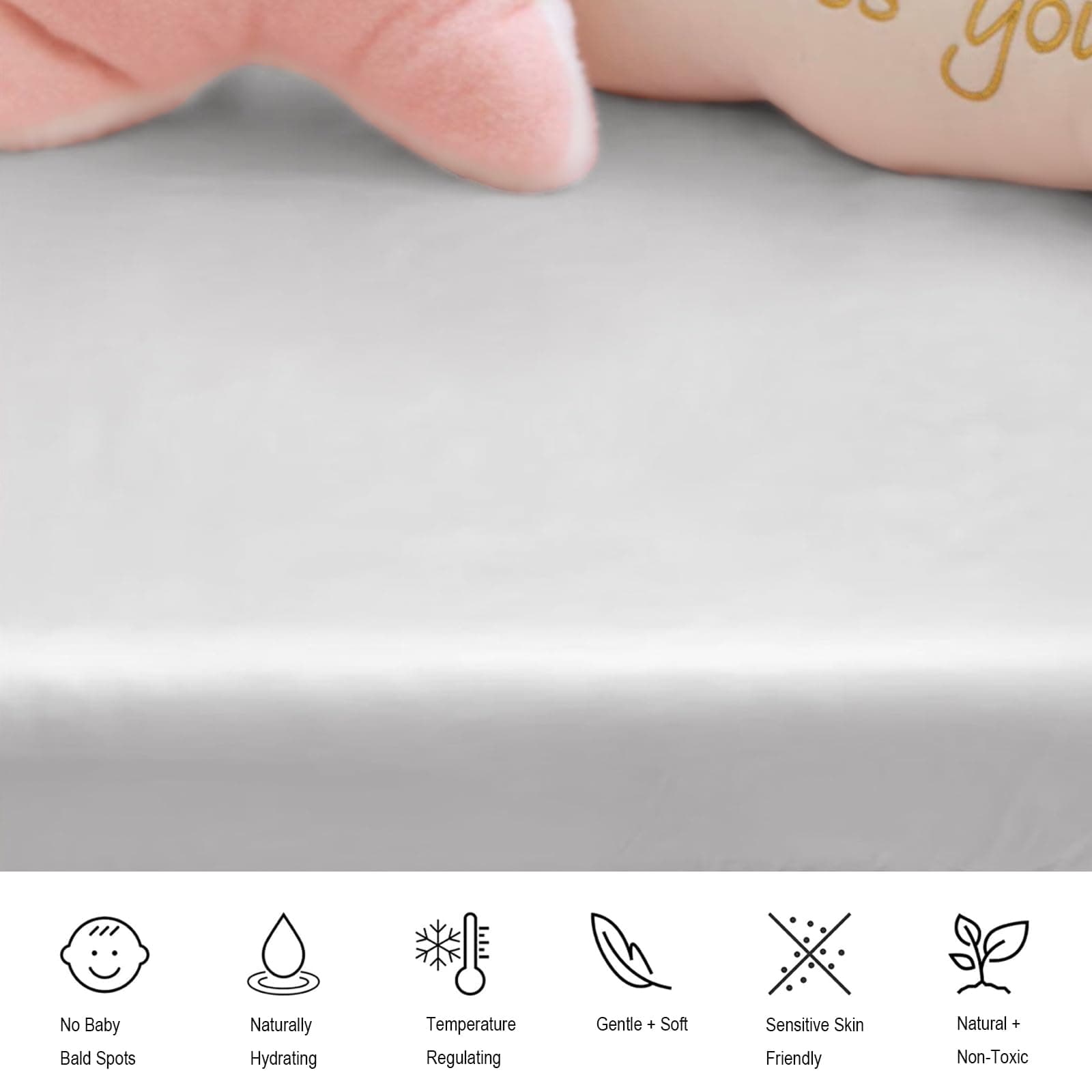 3. Transpirable y regula la temperatura: La sábana de cuna ajustable de seda de morera es transpirable y regula de forma natural la temperatura de tu bebé para ayudar a mantenerlo fresco en verano y cálido en invierno.