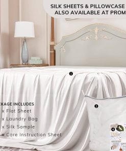Las sábanas de seda Promeed son ideales para aquellos con piel sensible o afecciones cutáneas, ya que mantienen la piel hidratada gracias a sus fibras suaves y tejidas de forma estrecha. Además, la seda es un material natural que regula la temperatura, lo que garantiza un sueño fresco y cómodo. Esta sábana de seda plana no solo mejora la calidad del sueño, sino que también es fácil de cuidar: se recomienda lavar a mano y es lavable a máquina en ciclo suave. Con Promeed, disfrutarás de una ropa de cama duradera y suave al tacto incluso después de varios lavados. ¡Consigue tu sábana de seda Promeed y experimenta el lujo en tu cama!