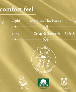 Esta sábana plana de lujo está fabricada con 100% algodón puro y cuenta con 600 hilos, lo que le proporciona una suavidad y frescura incomparables. Su tejido transpirable garantiza una sensación de frescura durante toda la noche. Perfecta para quienes buscan un descanso de hotel de calidad en su propia casa. Este juego incluye una sábana plana en tamaño gemelo con un elegante color dorado que aportará un toque de lujo a tu habitación.