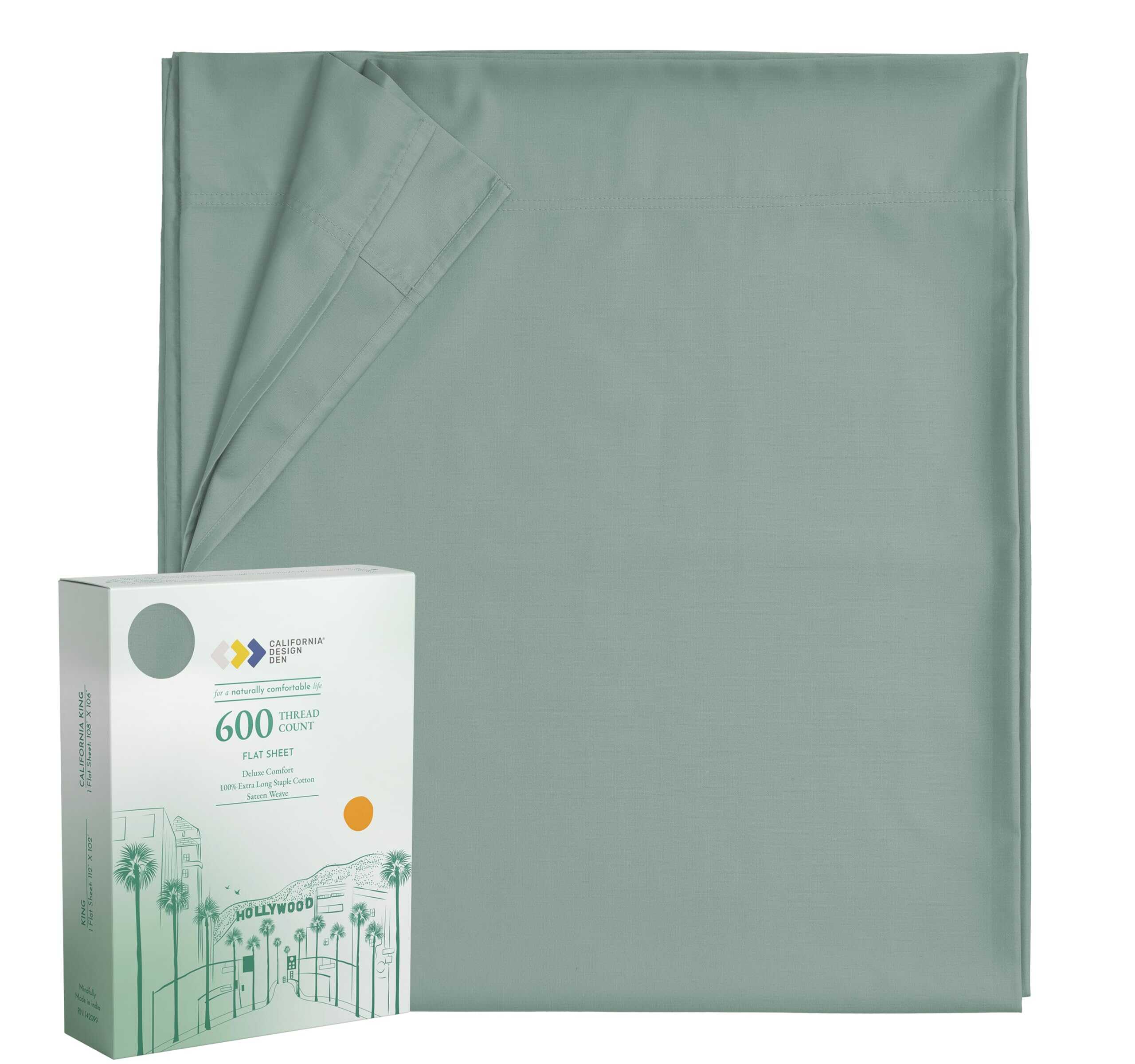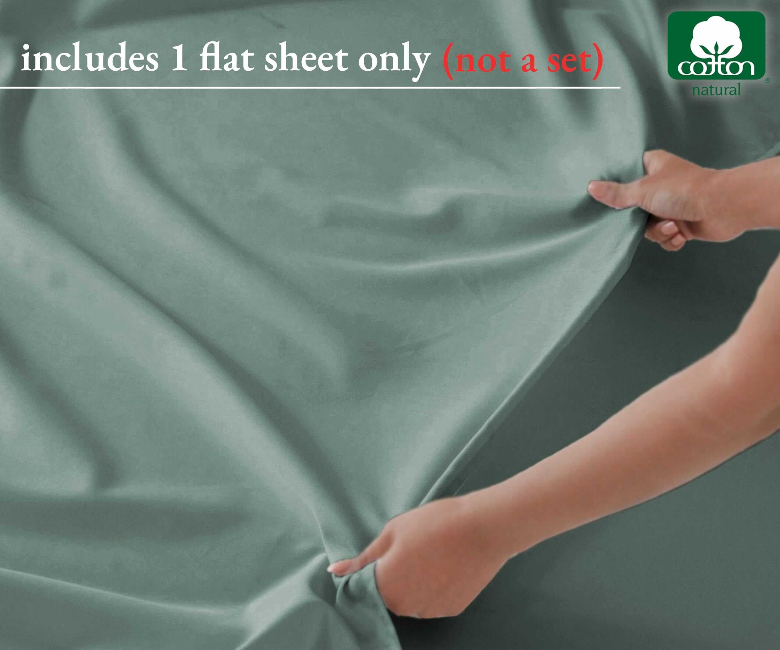 Sábana Plana 100% Algodón Puro – 600 Hilos, -Verde Salvia
