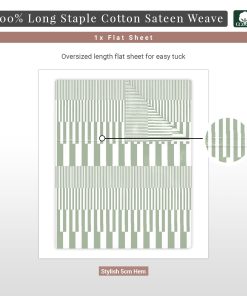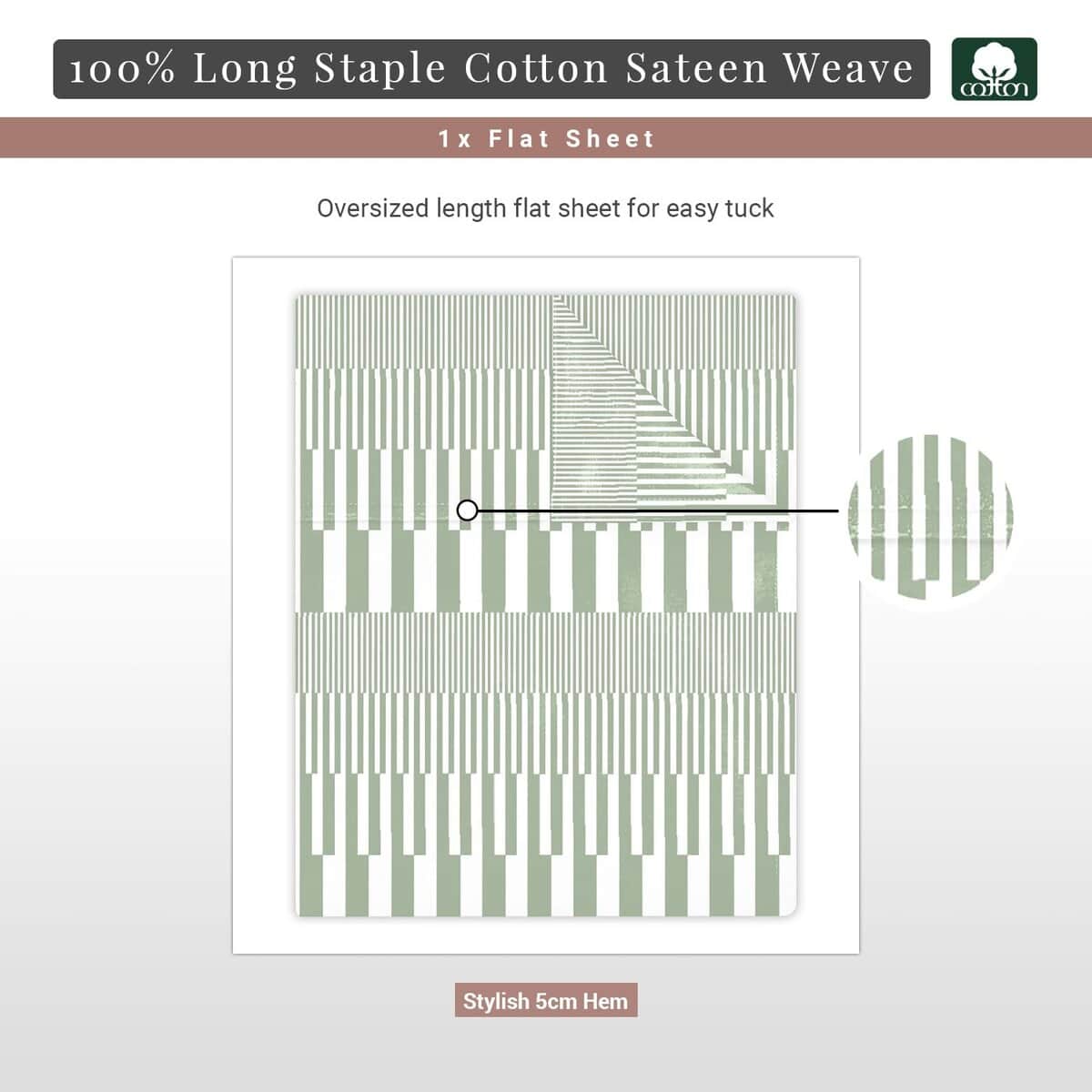 Sábana Plana 100% Algodón Puro Full Verde Rayas Cascada (1
