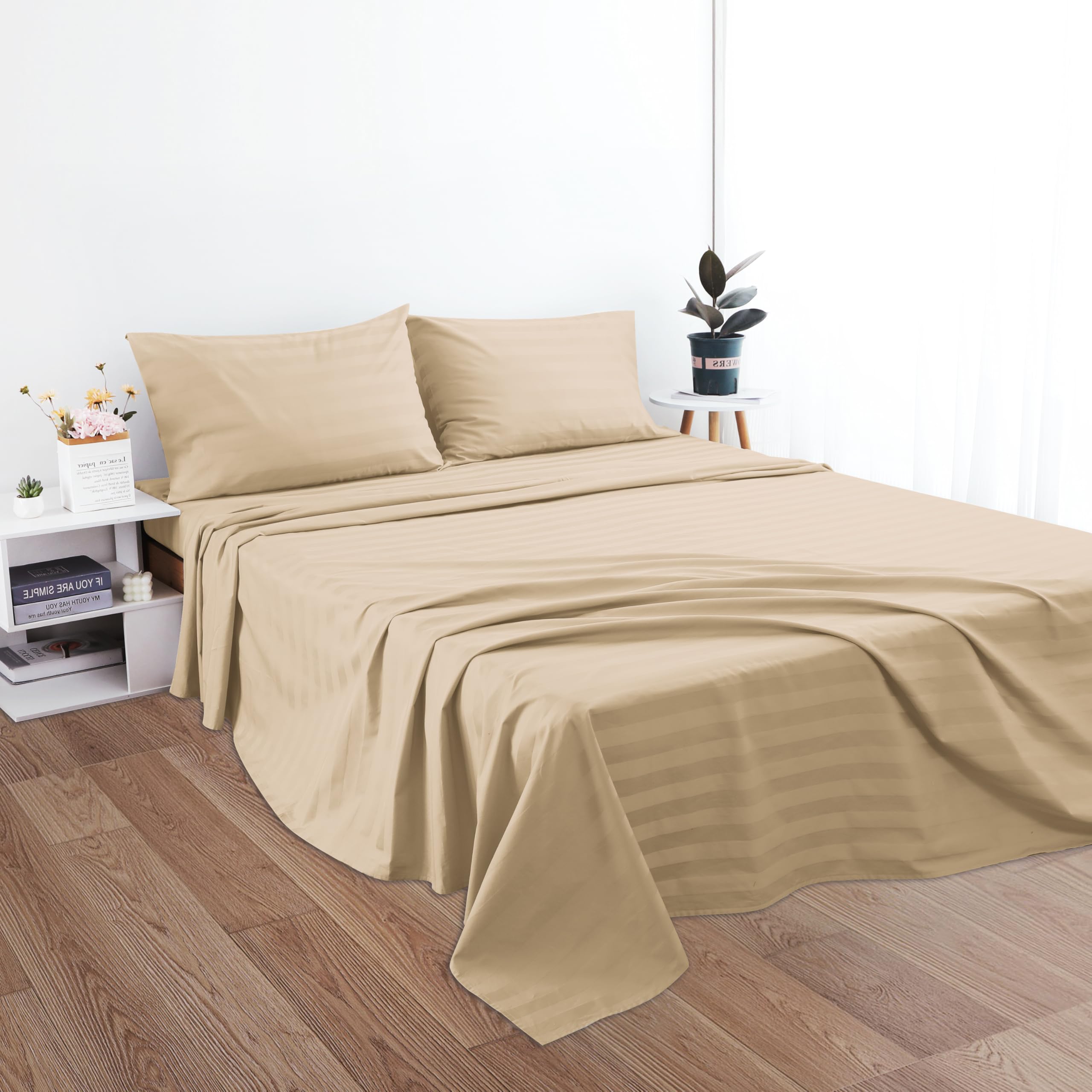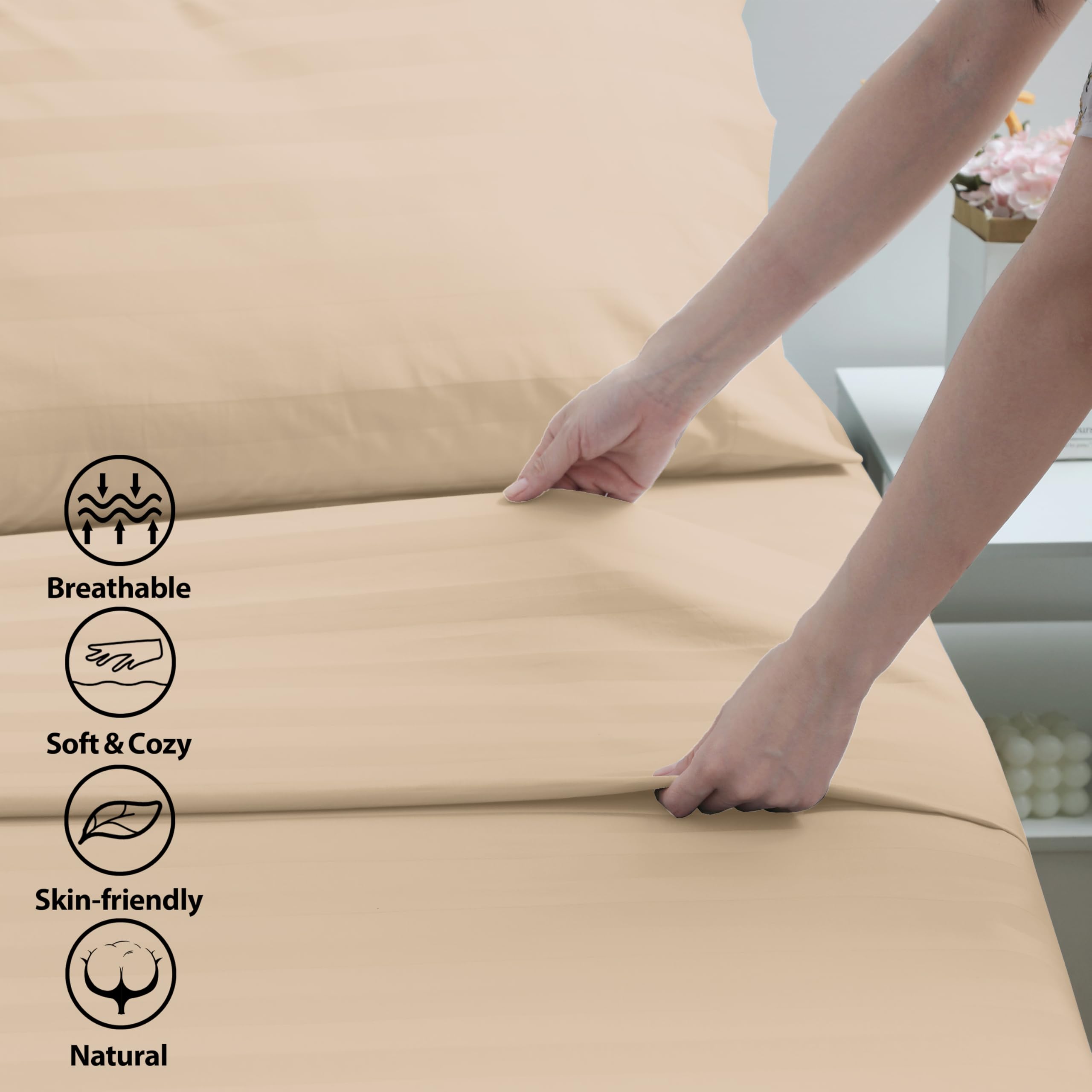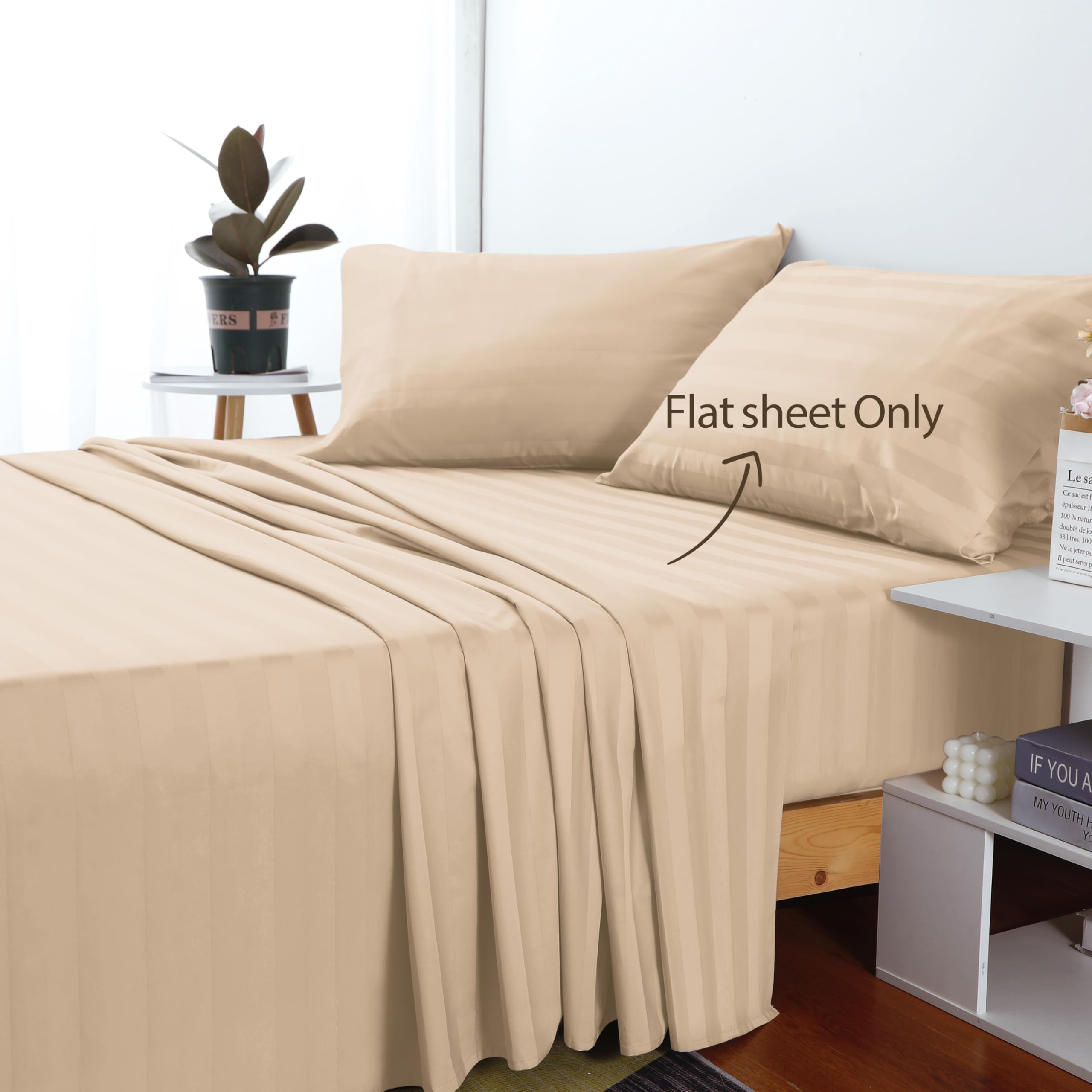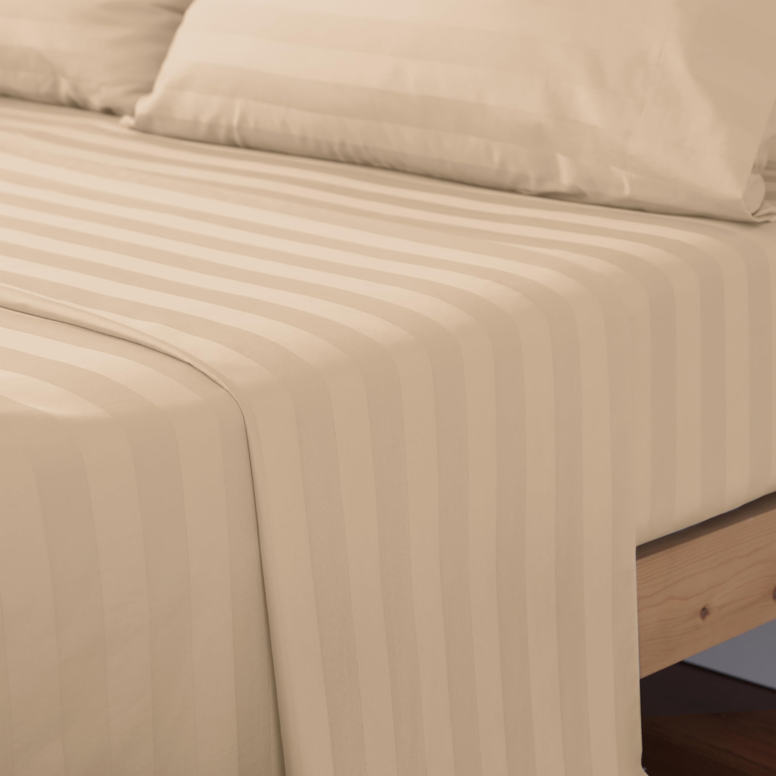 Sábana Plana de Algodón King, 600 Hilos -Rayas Beige Profund
