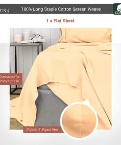 Pizuna Quality Standard: Pizuna products are individually tailored, measured and checked (piece by piece) by our Quality Assurance team. The fabric in this queen flat sheet cotton is OEKO-TEX Certified, free from chemicals, Planet Friendly and certified AZO-free, making it soothing for the most delicate skin.