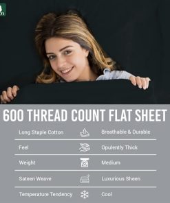 Crafted from 100% Long-Staple Combed Cotton Sateen Weave, this opulently thick 600 thread count king flat sheet with its mid-weight texture, is made with specially compacted yarn. Minimal artificial processing makes this flat sheet king gentle on all skin types, prevents night sweats, absorbs moisture and regulates body temperature to sleep cool while maintaining a premium hotel look.