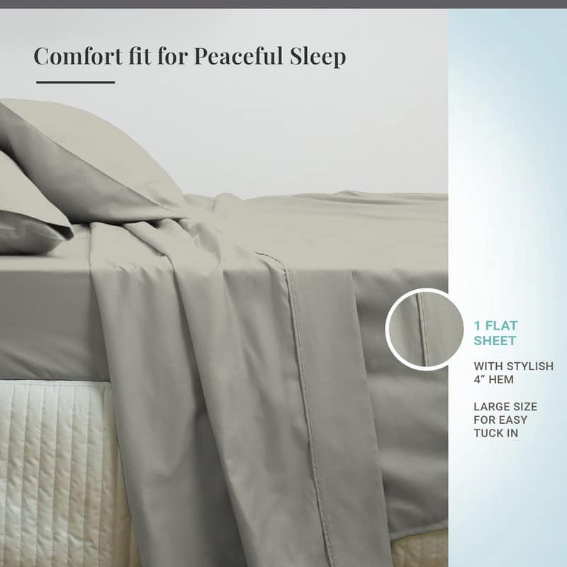 Sábana Plana de Algodón Puro 100% Pizuna para Cama King,