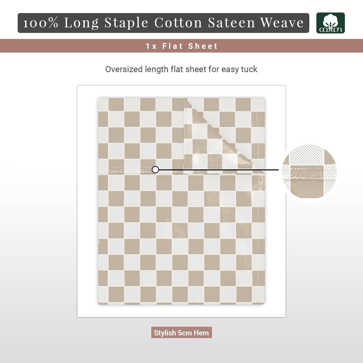 Sábana Plana de Algodón Puro 100% Pizuna Size Queen Taupe