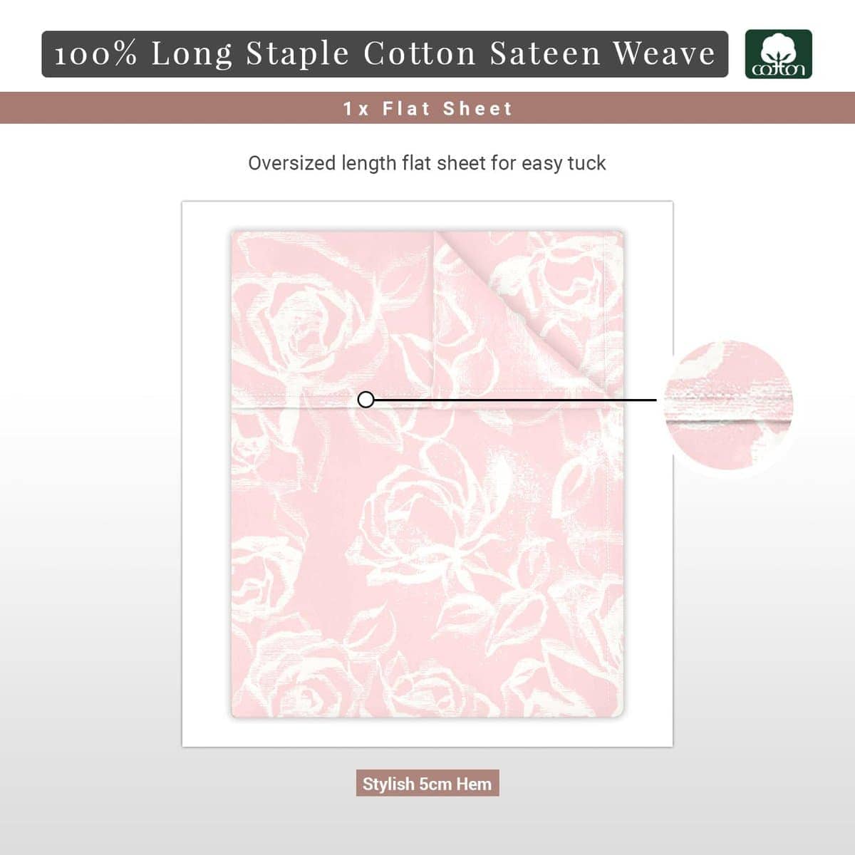 Sábana Plana de Algodón Puro 100% solo Full Rosa Simply
