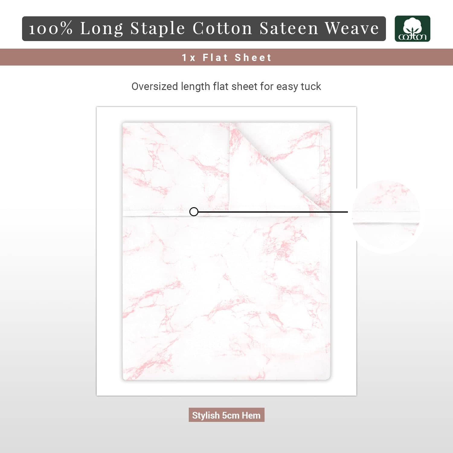 Sábana Plana de Algodón Puro 100% Solo Twin XL Carrara