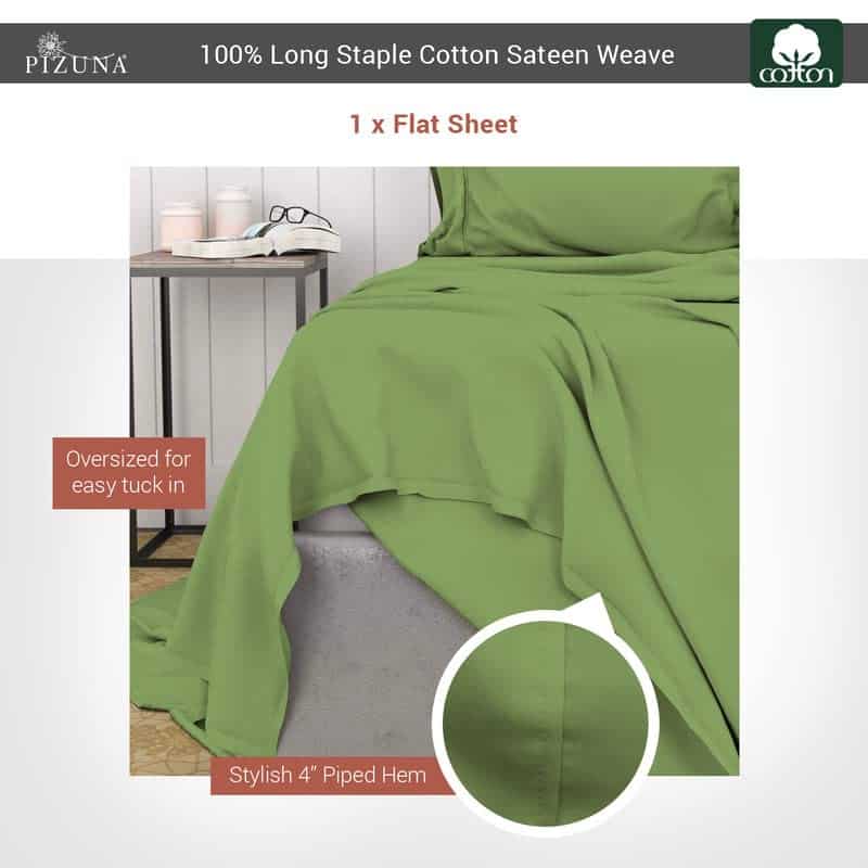 Sábanas de Algodón de Fibra Larga 100% Pizuna: Descubra nuestra línea de sábanas de algodón de alta calidad que ofrecen una suave sensación de hotel desde la comodidad de su hogar. Creada con algodón de fibra larga peinado en un tejido de sarga de 400 hilos, nuestra sábana plana king size está diseñada para brindarle una experiencia de sueño incomparable.