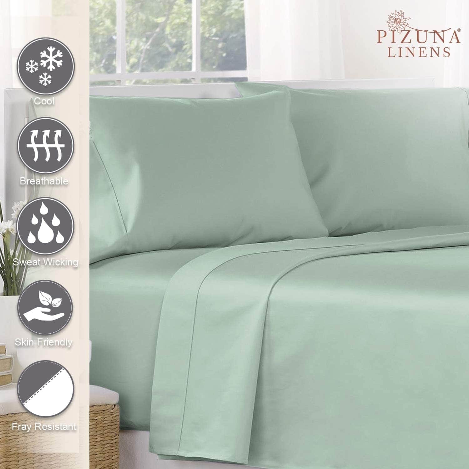 Sábana Plana de Algodón Puro Pizuna Queen Sea Foam (1