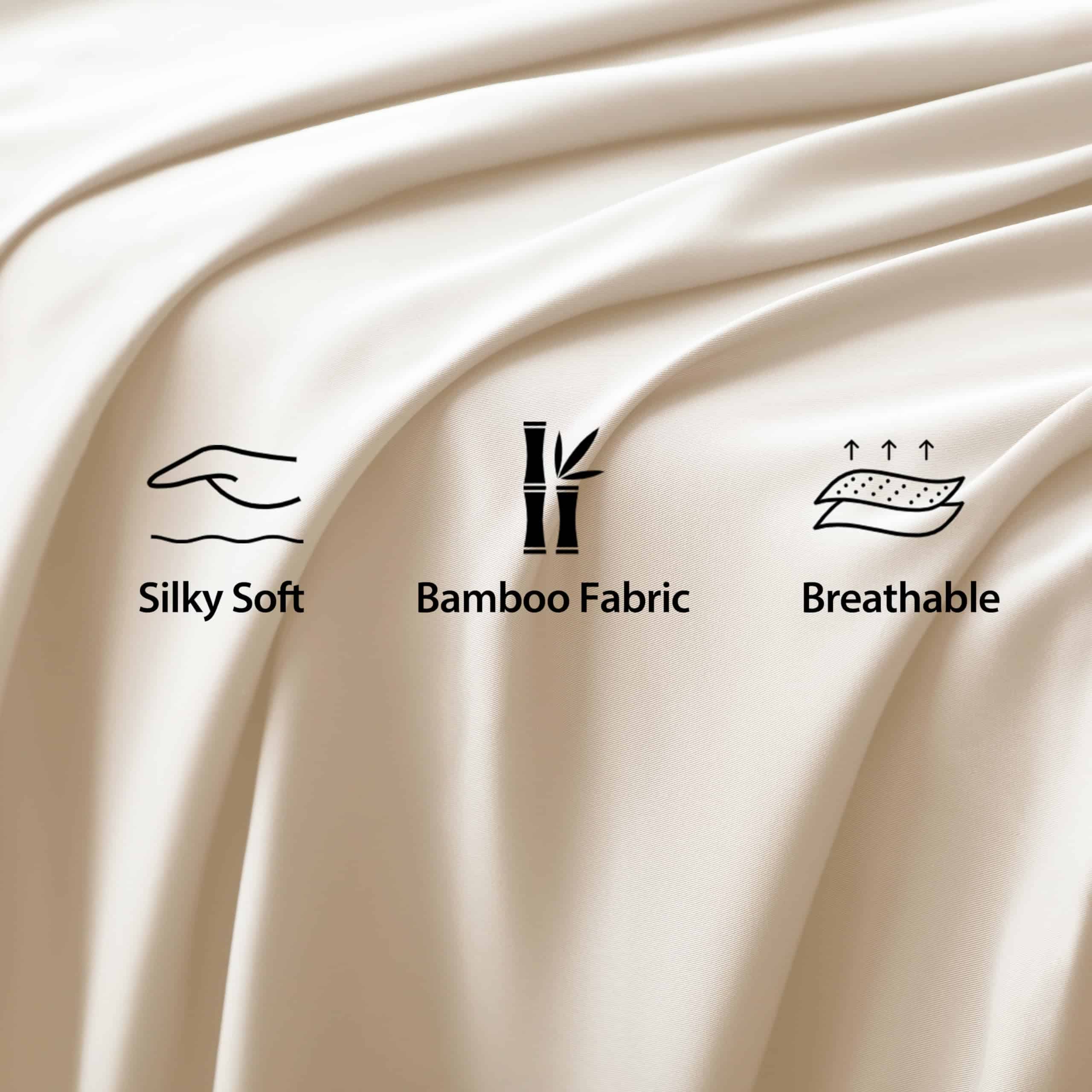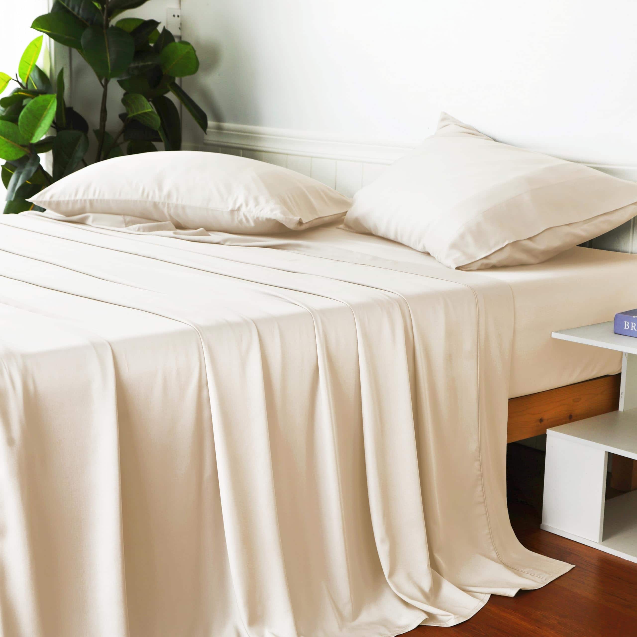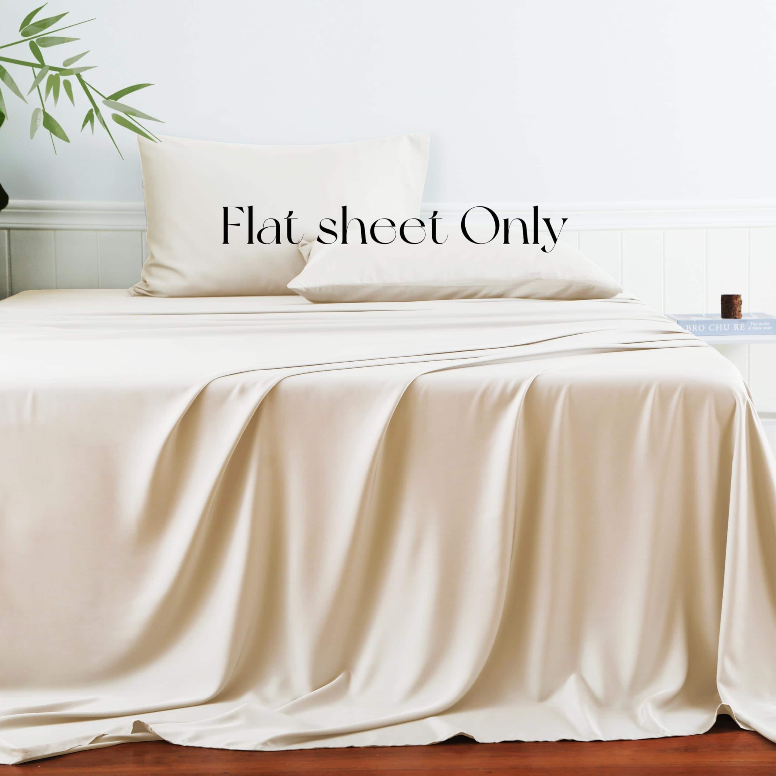 Bamboo Viscose Flat Sheets Only, 400 Thread Count Sateen Weave Cal King Size Flat Sheet Only, Luxury Soft Cooling for Hot Sleepers, Silky Breathable (Beige, Cal King)