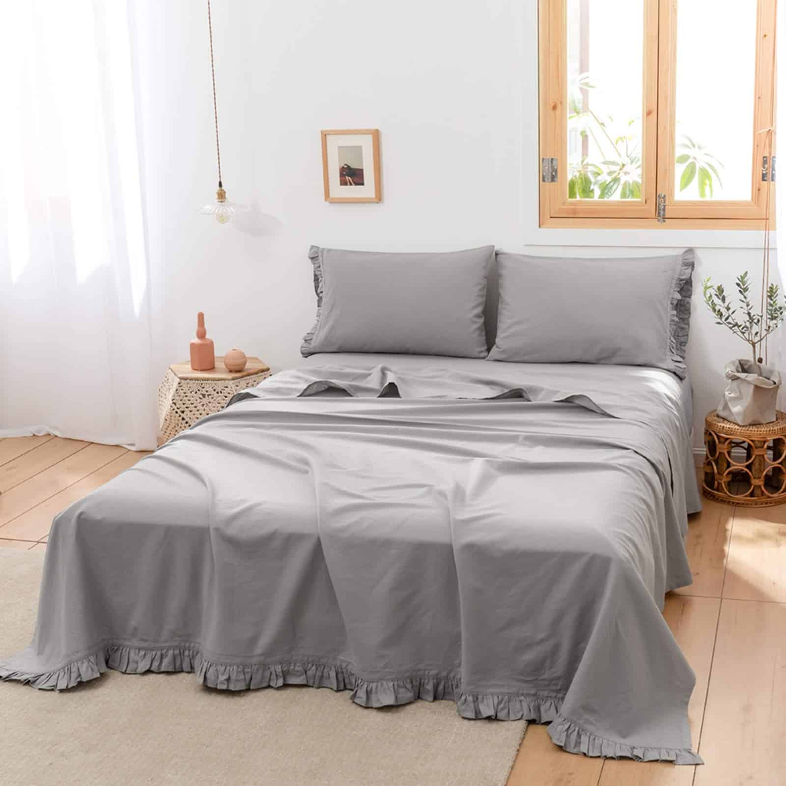 Sábana Plana de Lino con Pliegues en Francés Solida Color