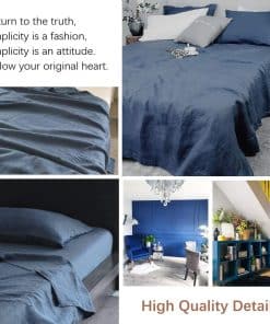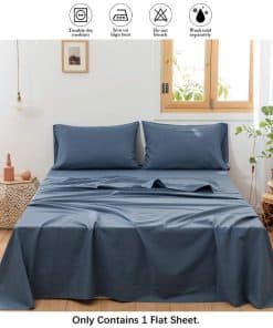 Sábana plana de lino francés BISELINA 55% -Azul Marino