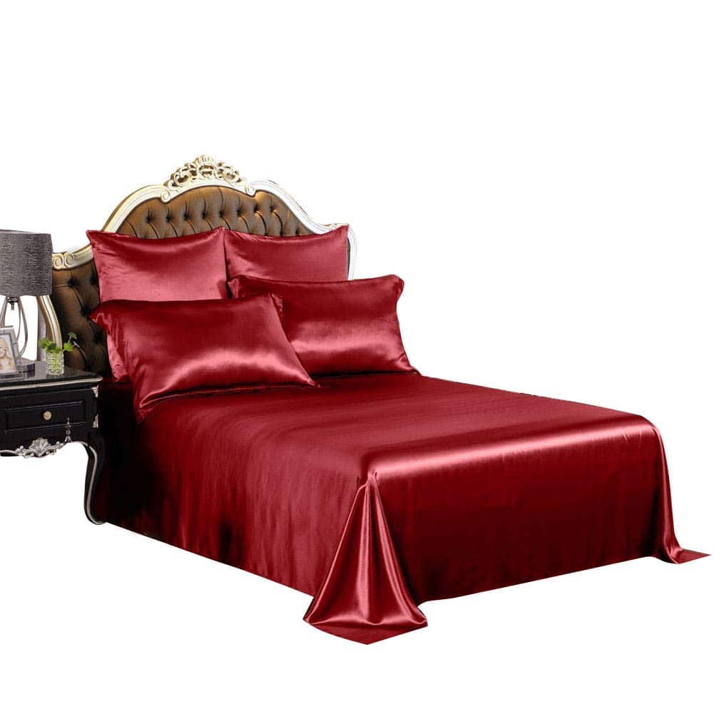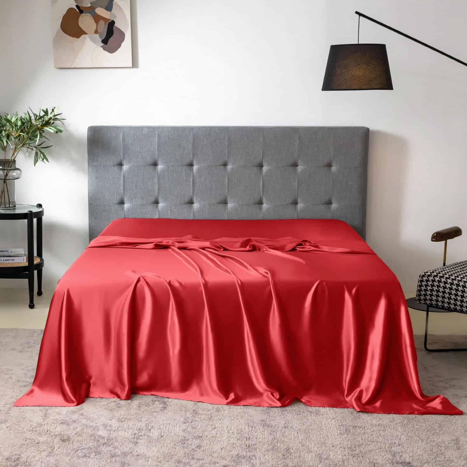 Sábana Plana de Seda Pura THXSILK, 100% -Rojo