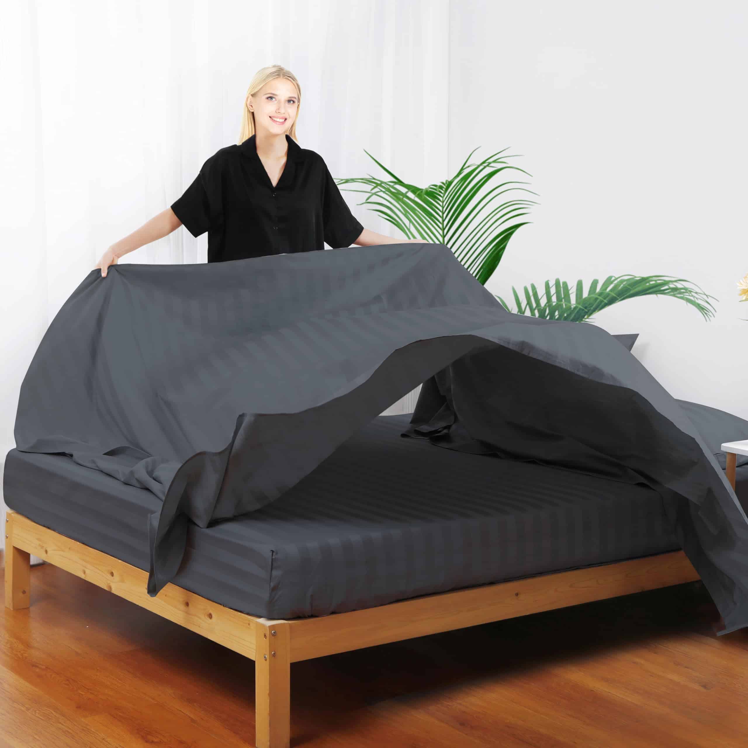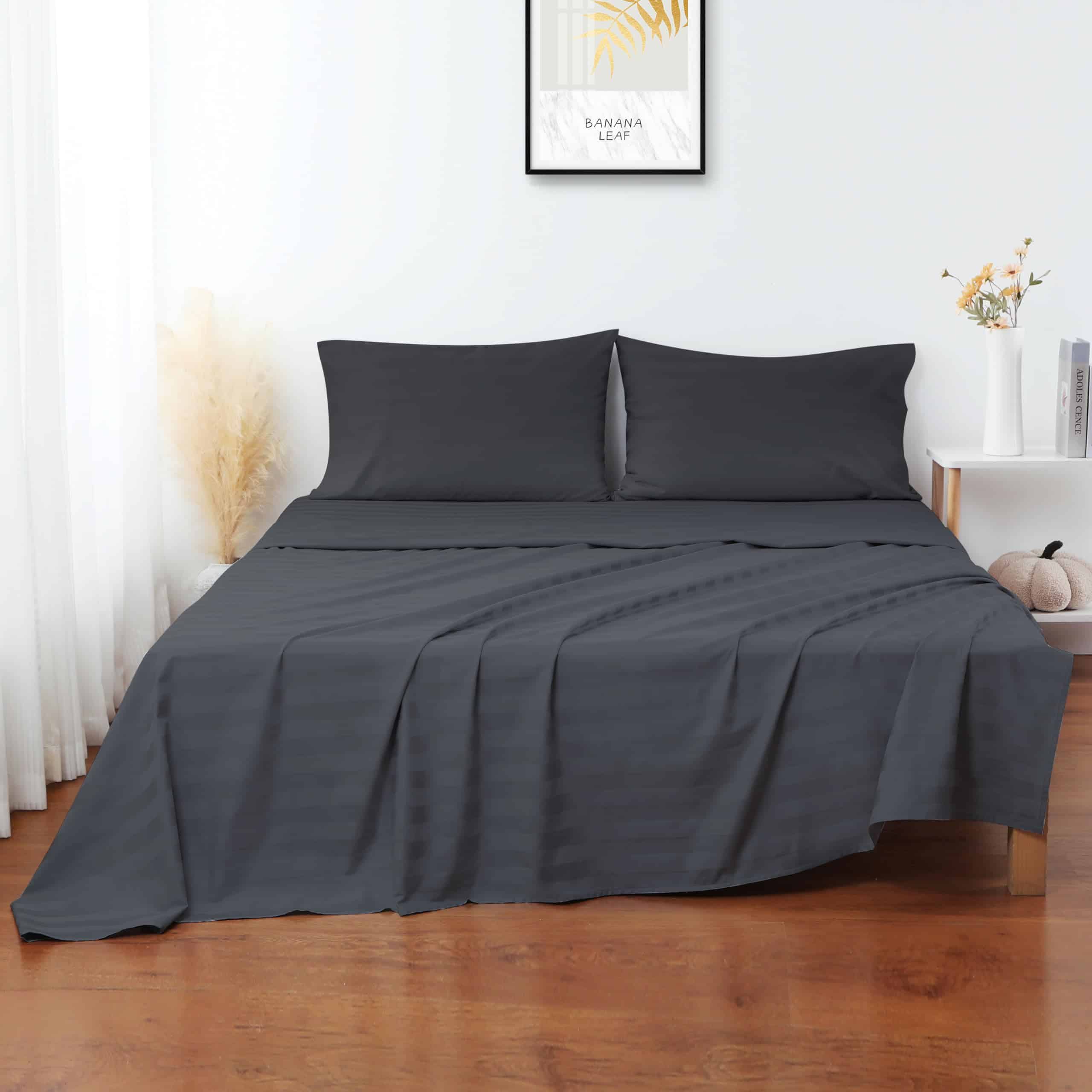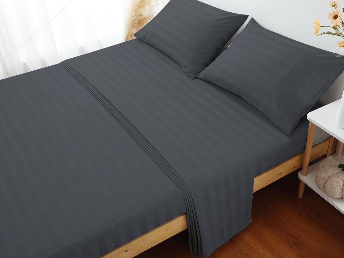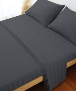 Sábana Plana tamaño King, 400 TC 100% -Gris Oscuro a Rayas