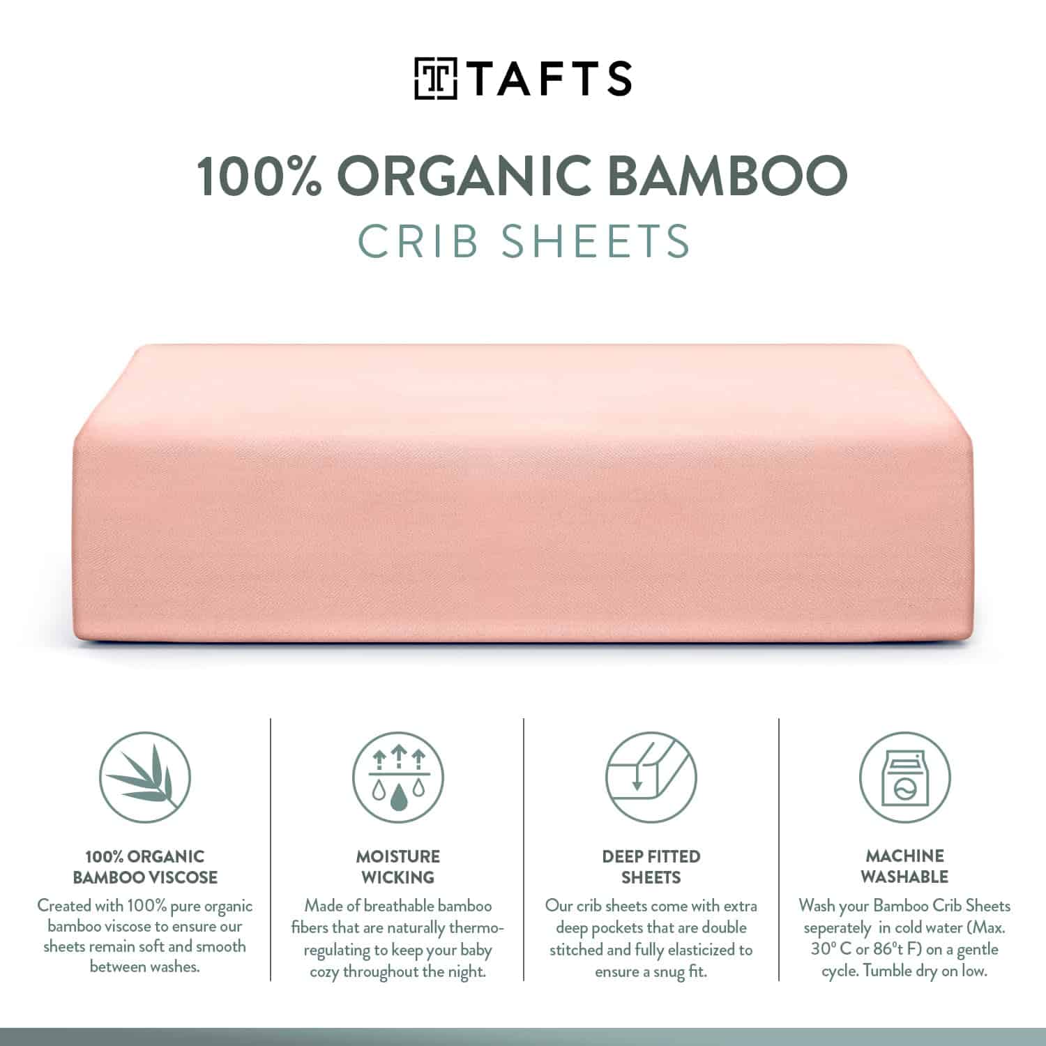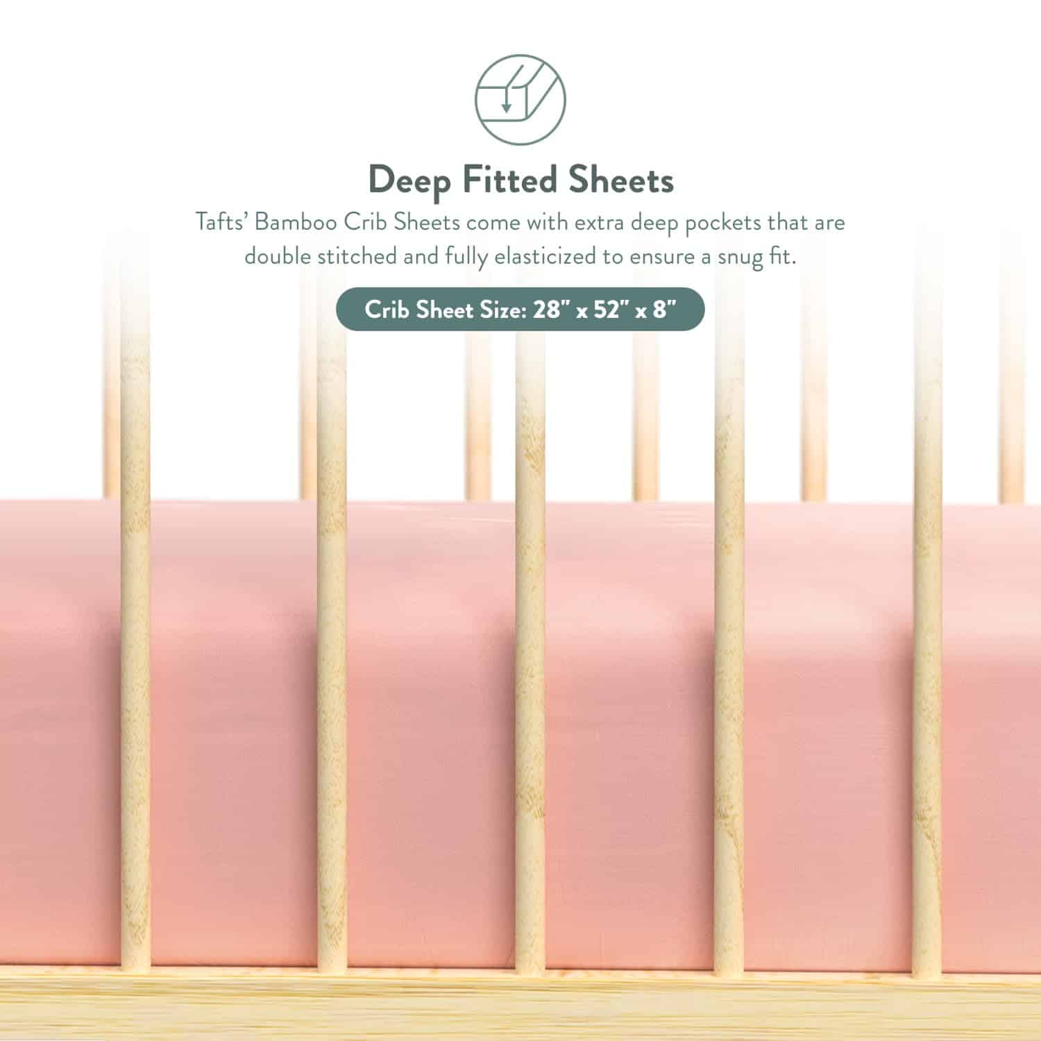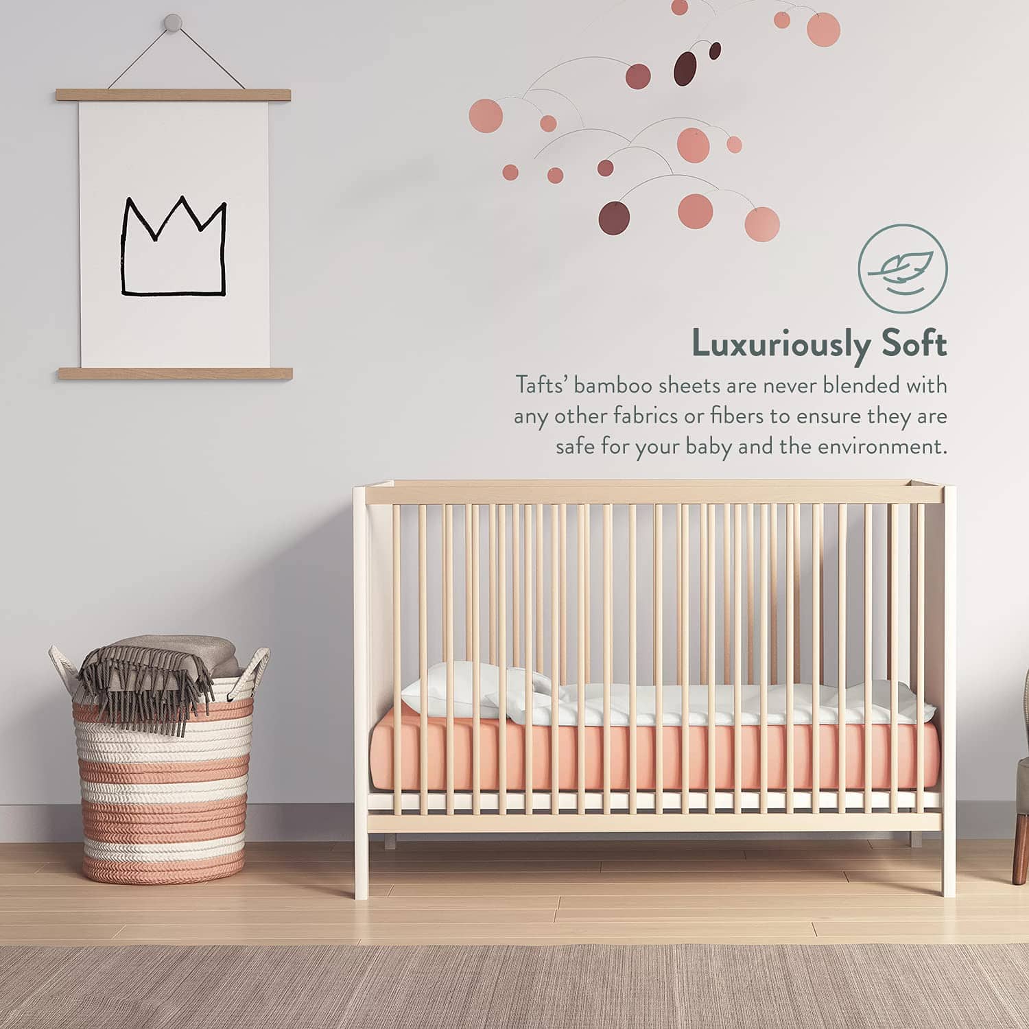 SÁBANAS AJUSTABLES TAFTS – Paquete de 2 – 100% Viscosa – Importadas – Niñas, Niños y Unisex – Bolsillo Profundo de 8 Pulgadas – Colchón Estándar para Corralito y Niño Pequeño – Refrigerantes – Suaves – Elástico 360 – Calidad de por Vida – 28 pulgadas x 52 pulgadas