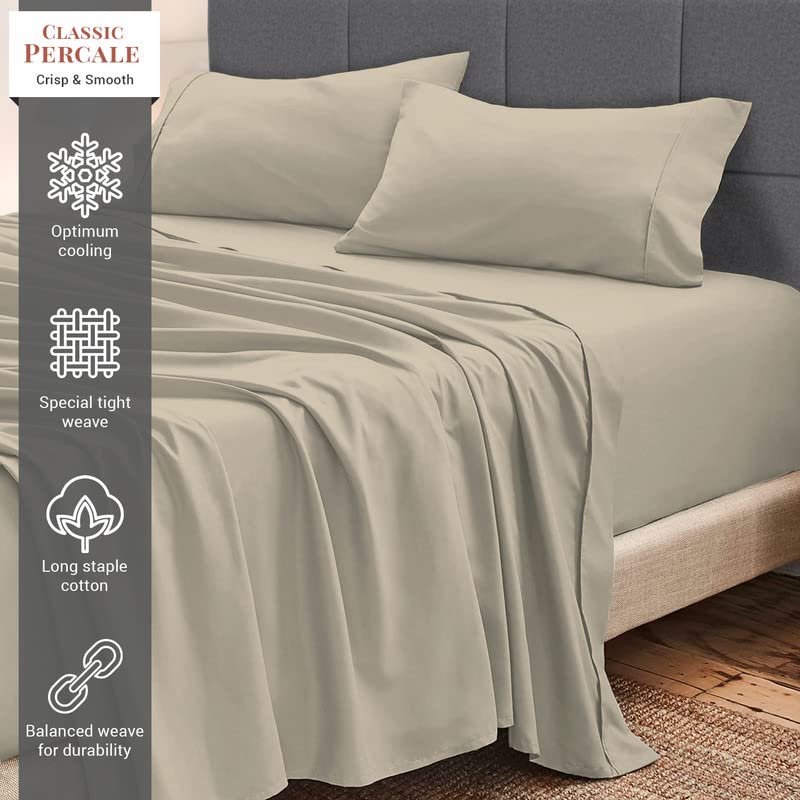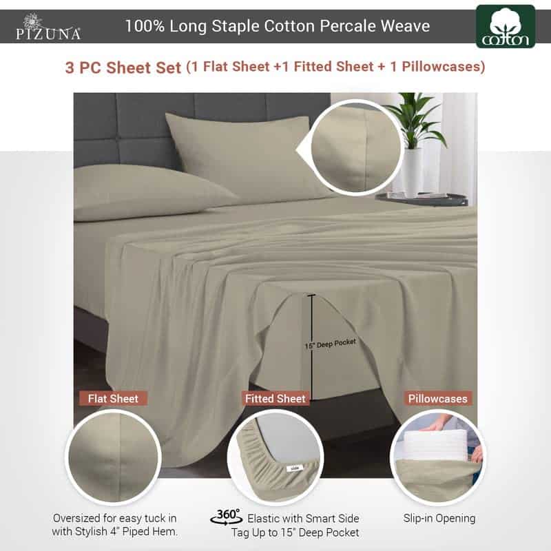 Sábanas de Algodón Percale Pizuna Tamaño Twin, 100% Algodón