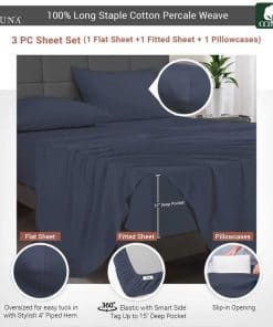 Sábanas de Algodón Perkal Pizuna Tamaño Twin XL, 100%