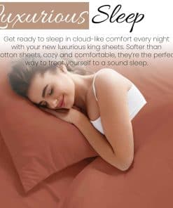 1. COMODIDAD ÚLTIMA: Prepárate para dormir plácidamente todas las noches con tus nuevas lujosas sábanas de cama king. Suaves, acogedoras y cómodas, son la forma perfecta de regalarte la experiencia de sueño definitiva.